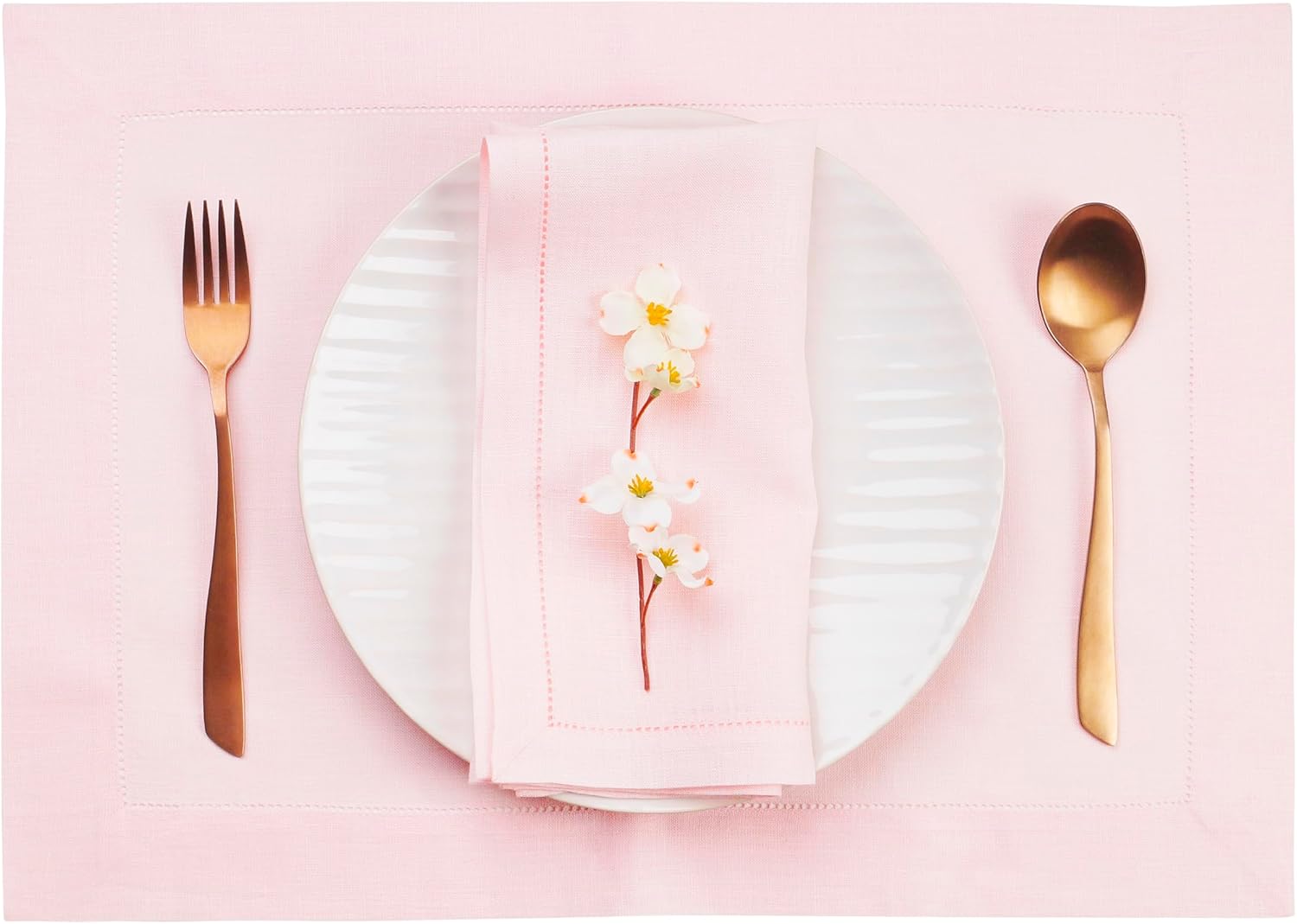 • PREMIUM EUROPEAN LINEN - These pastel pink placemats are made from 100% European flax linen, not blended with cheaper materials like cotton or polyester. Pure linen is an exceptionally durable midweight, hypoallergenic (good for people with allergies) fabric which outperforms cotton in tensile strength and abrasion resistance.