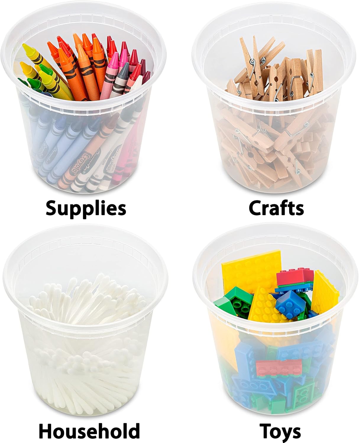 • 30 Plastic food storage containers and 30 lids. 24oz capacity. Clear - so you can easily see what's inside. Tight sealing lids for airtight leakproof storage – keeps food fresher for longer.