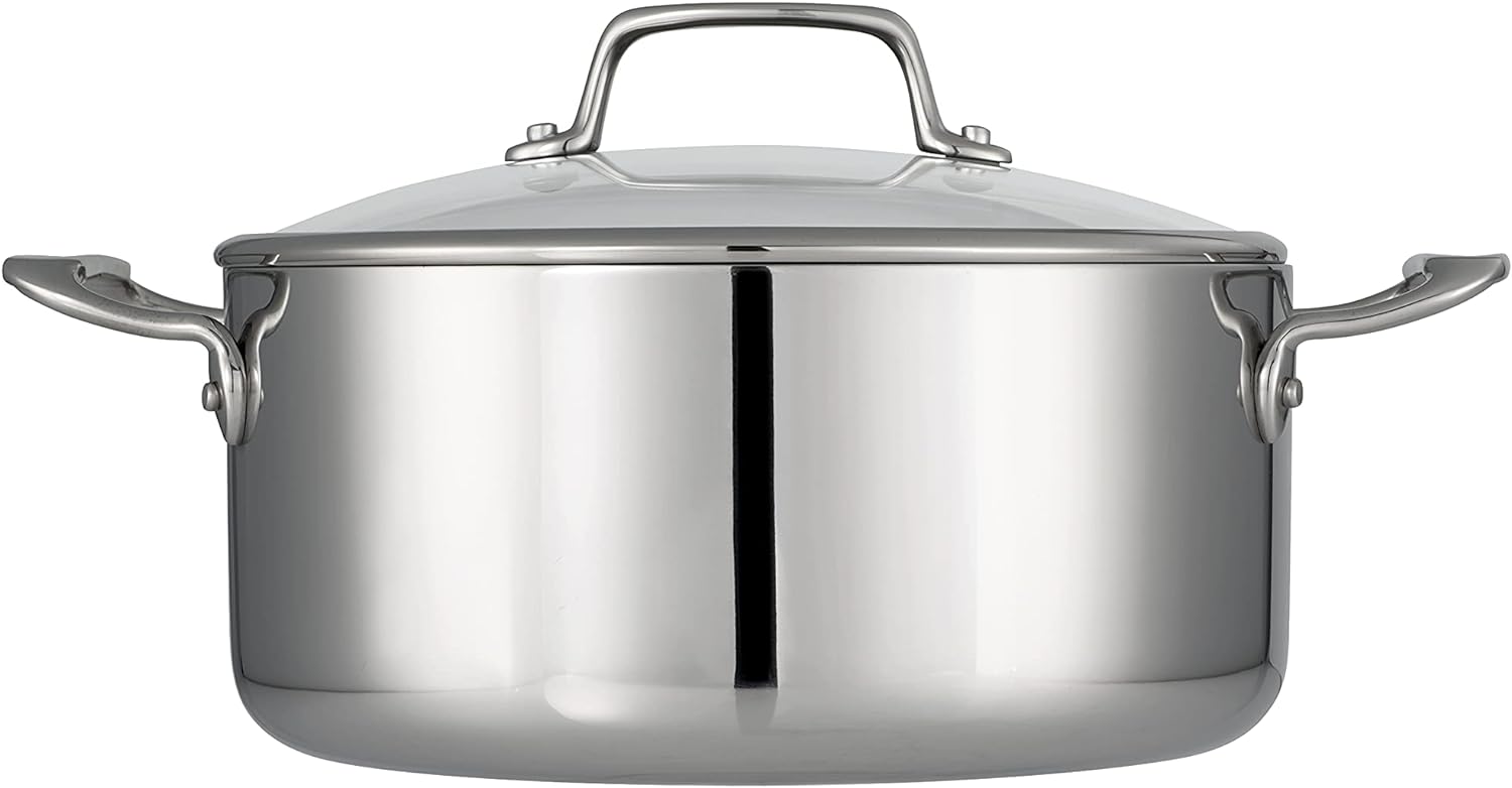 Tramontina Tri-Ply Clad Stainless Steel 5-Quart Dutch Oven Pot with Glass Lid, Induction-Ready, Dishwasher-Safe, NSF-Certified
