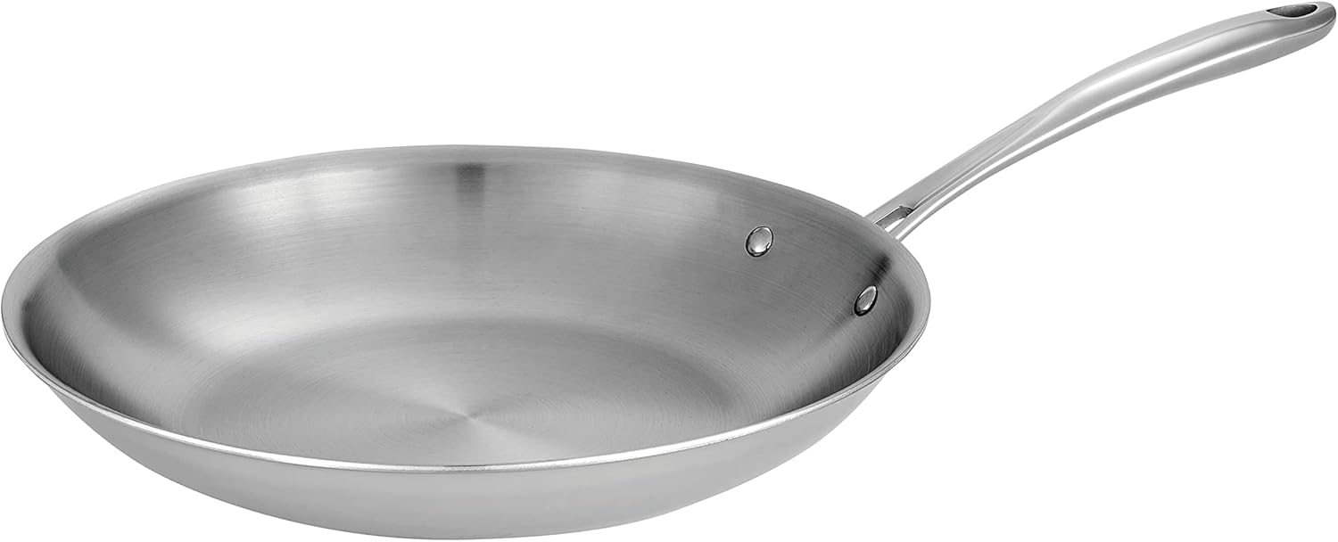 Tramontina Boston Tri-Ply Clad Stainless Steel 12-Inch Large Frying Pan, Induction-Ready Skillet, Dishwasher-Safe, NSF-Certified