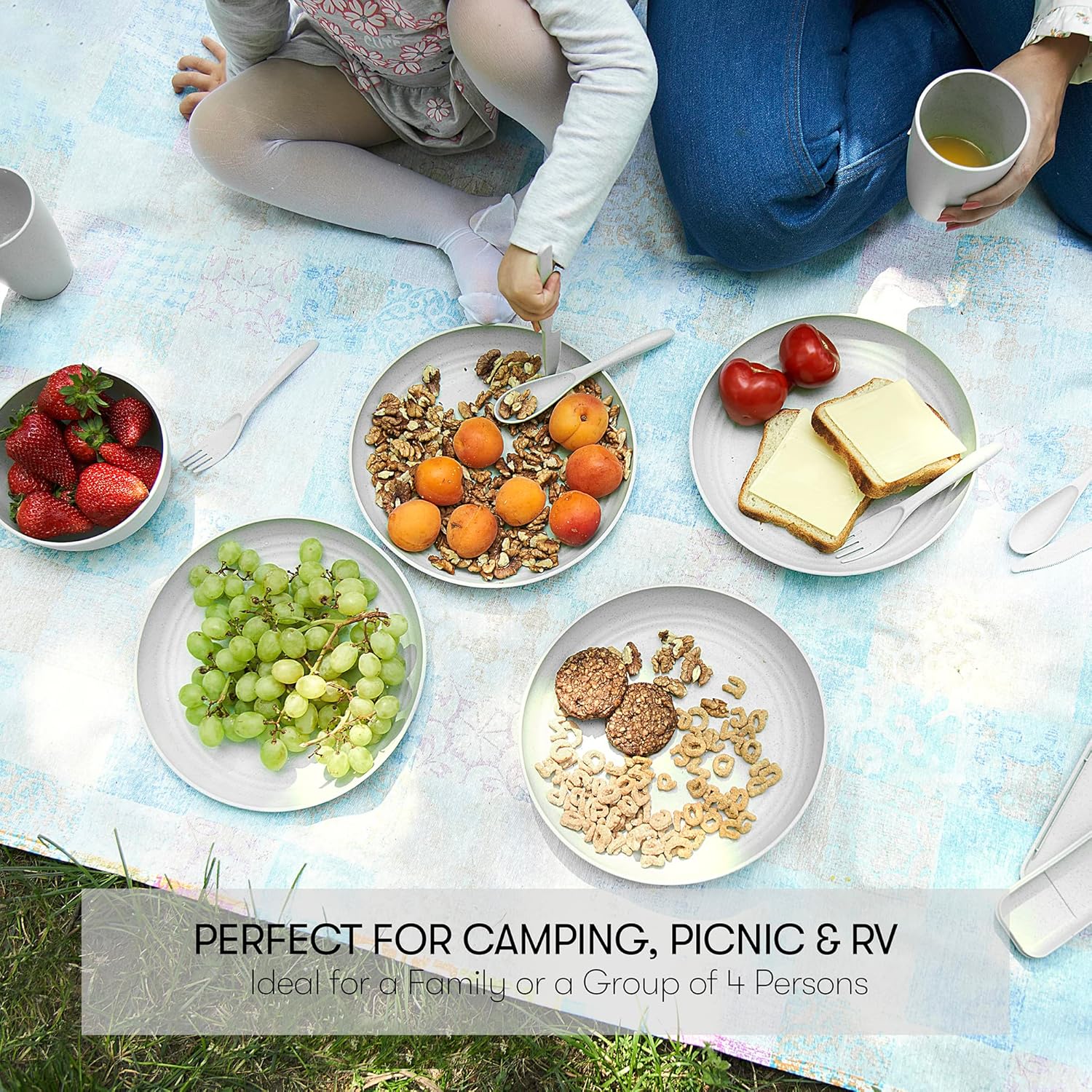 Wheat Straw Dinnerware Sets | Unbreakable Dinnerware Sets | Dishwasher Microwave Safe Dinnerware | Eco Friendly Non Breakable Dinnerware Sets | RV Outdoor Camping (Grey, Service for 4 (28 pcs))