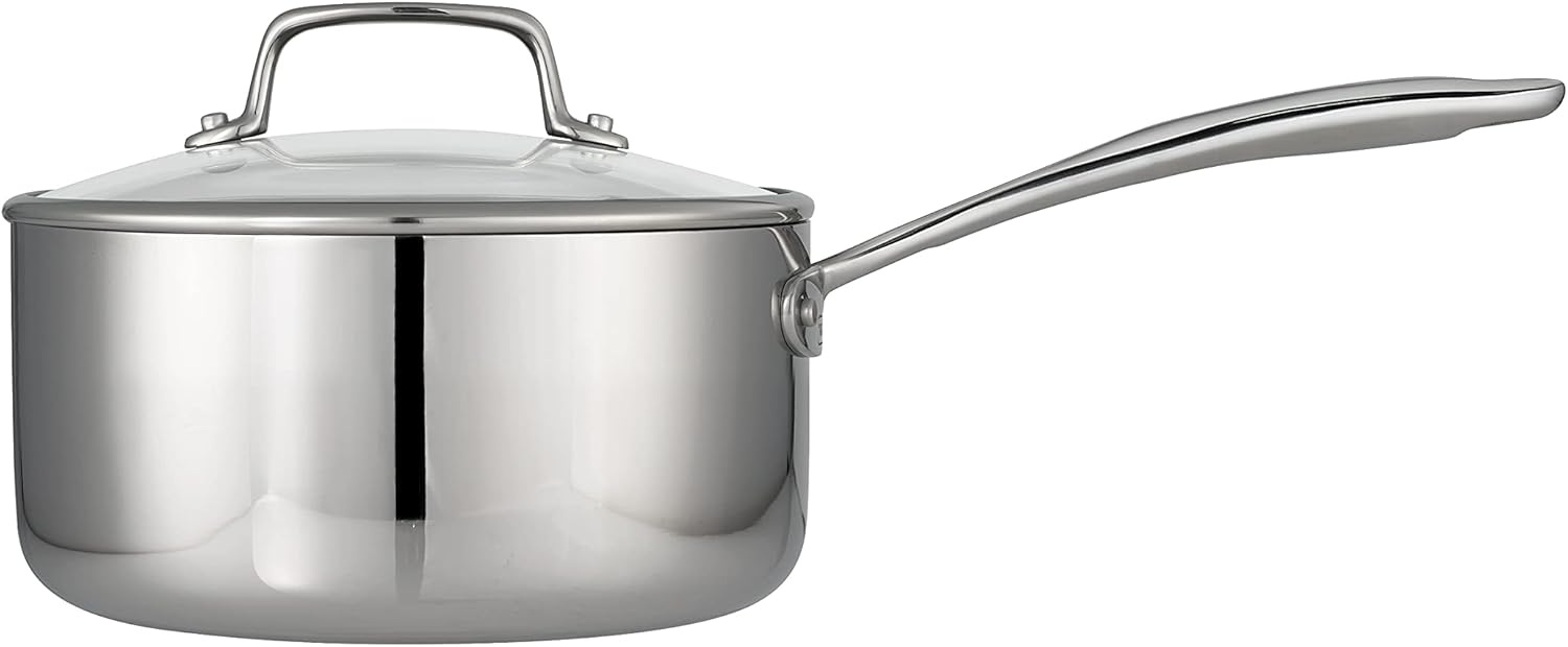 Tramontina Tri-Ply Clad Stainless Steel 3-Quart Sauce Pan with Glass Lid, Induction-Ready, Dishwasher-Safe, NSF-Certified