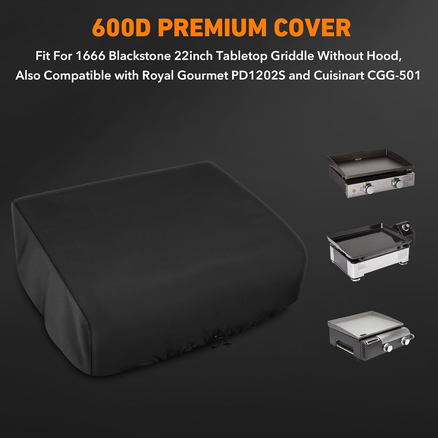 Heavy Duty Grill Cover Compatible with 1666 Blackstone 22inch Tabletop Griddle Without Hood, Also Compatible with Royal Gourmet PD1202S and Cuisinart CGG-501, Waterproof & Windproof