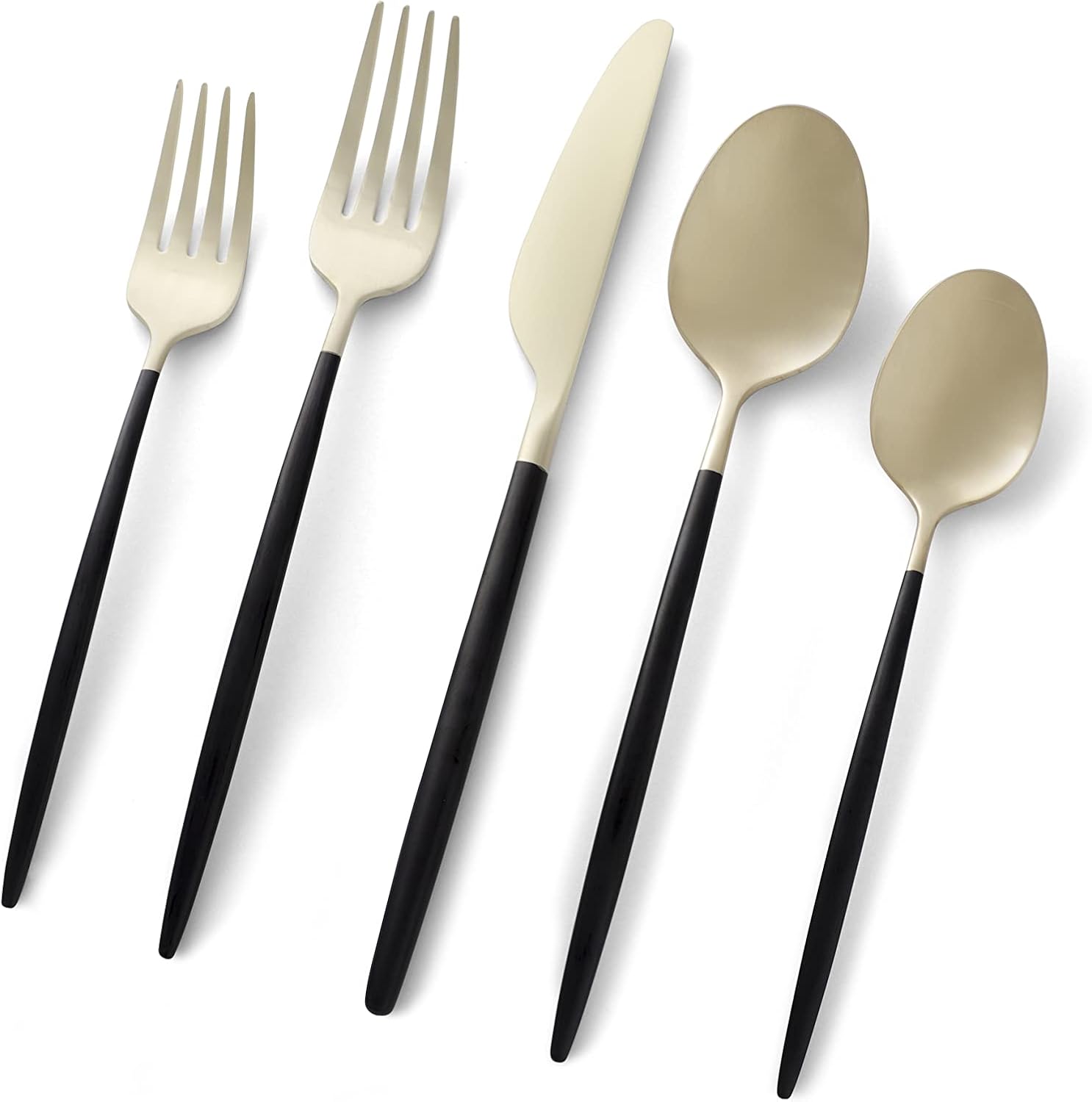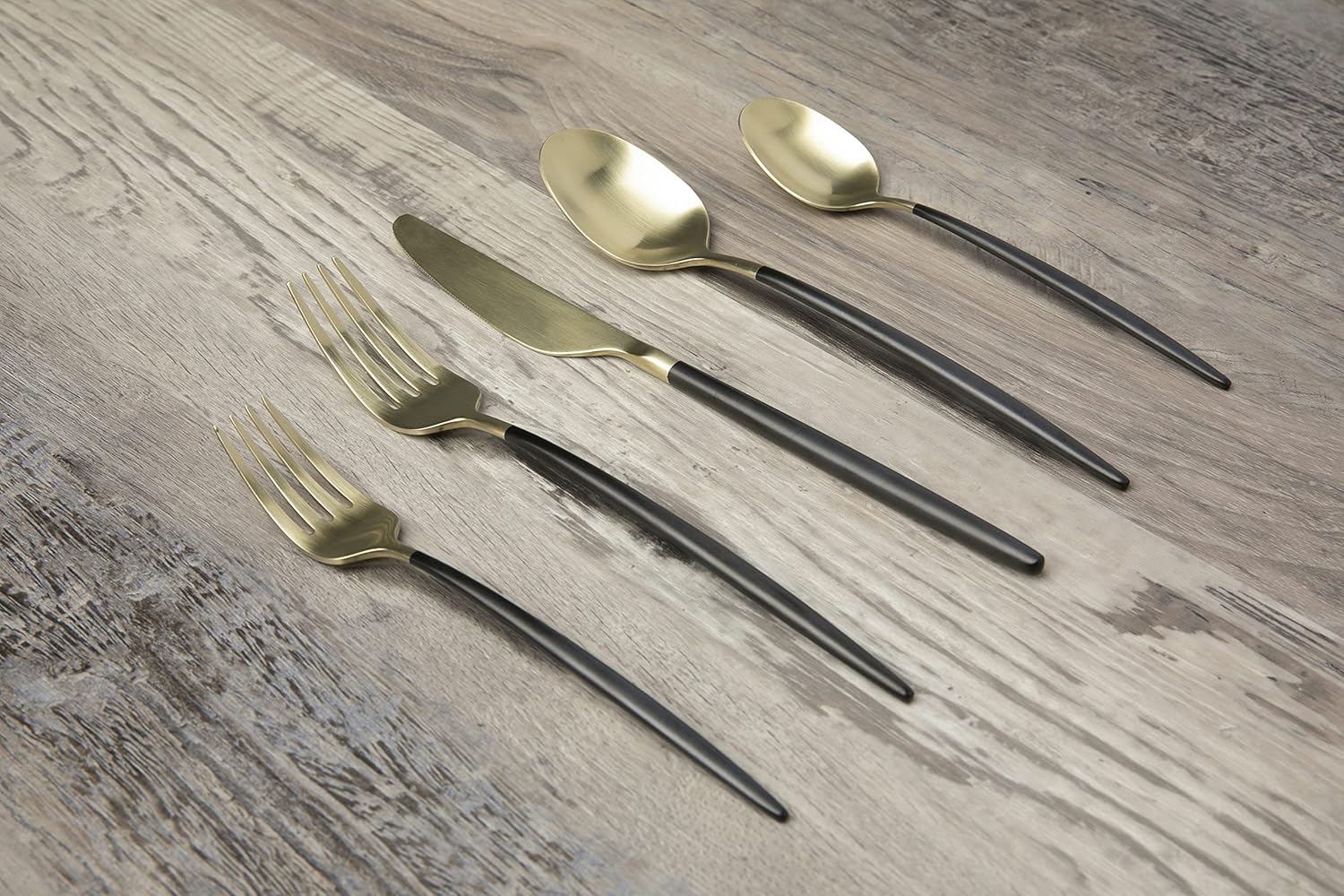 Cambridge 511120CKW12R Gaze Black Champagne Satin 20-Piece Flatware Set, Service for 4