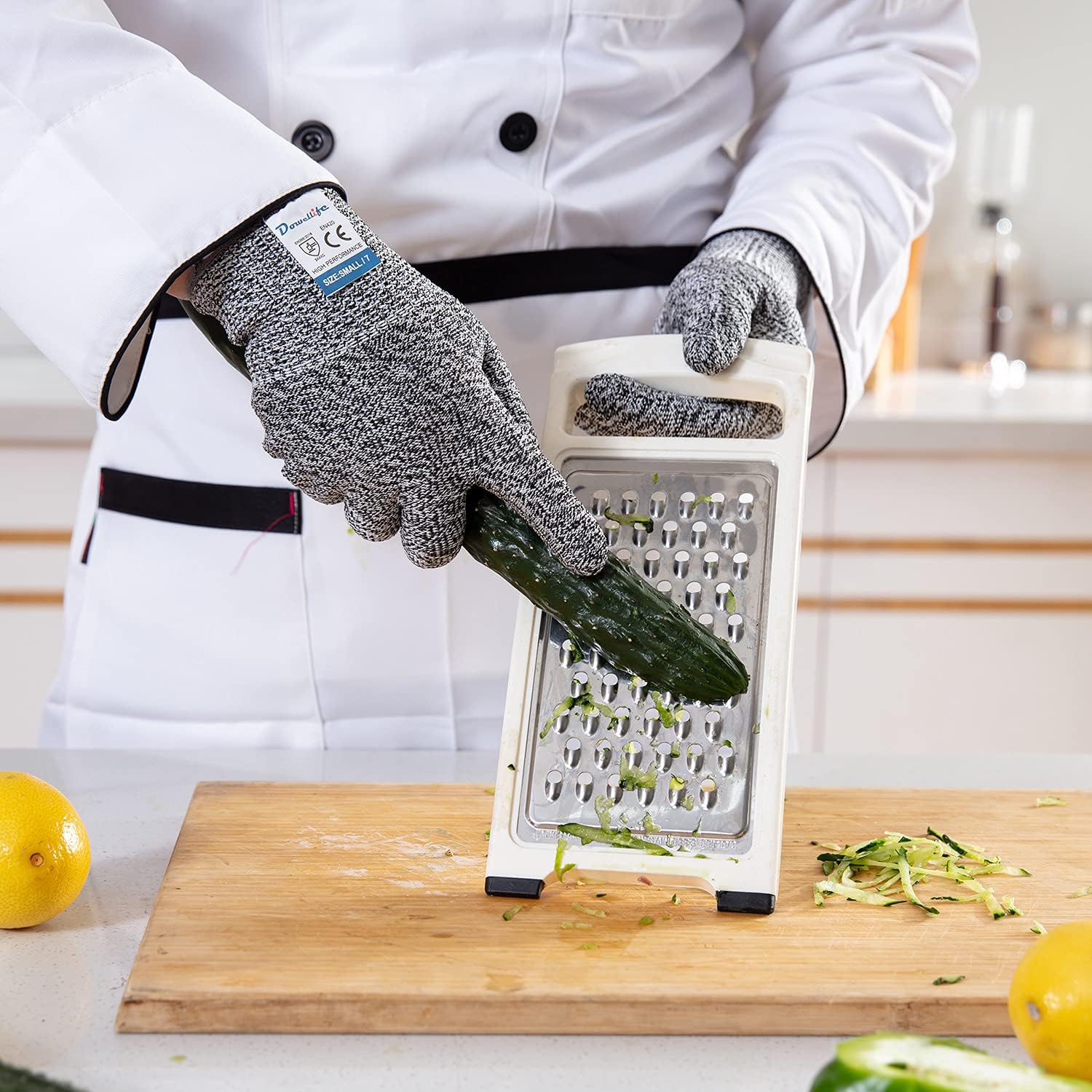 Dowellife 3 Pairs Cut Resistant Gloves Food Grade Level 5 Protection, Safety Kitchen Cuts Gloves for Mandolin Slicing, Fish Fillet, Oyster Shucking, Meat Cutting and Wood Carving (Black Gray, X-Large)