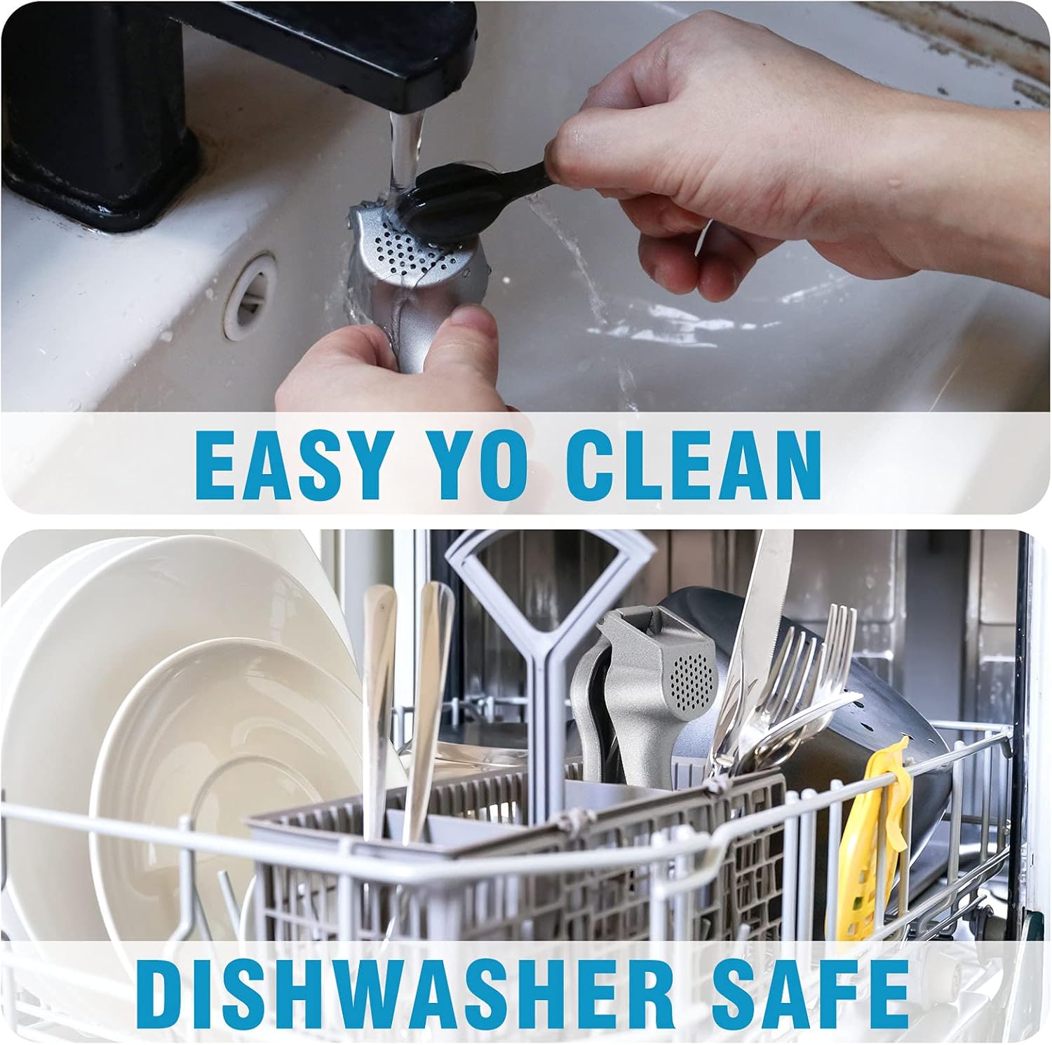 • 【EASY TO CLEAN】 With the design of non-stick surface, simply rinse your garlic mincers under running water or place in dishwasher for thorough cleaning. The brush provided in the package can also assist in cleaning. Clean up could not be any easier. Cleaning tool stores in the handle so it wont get lost.