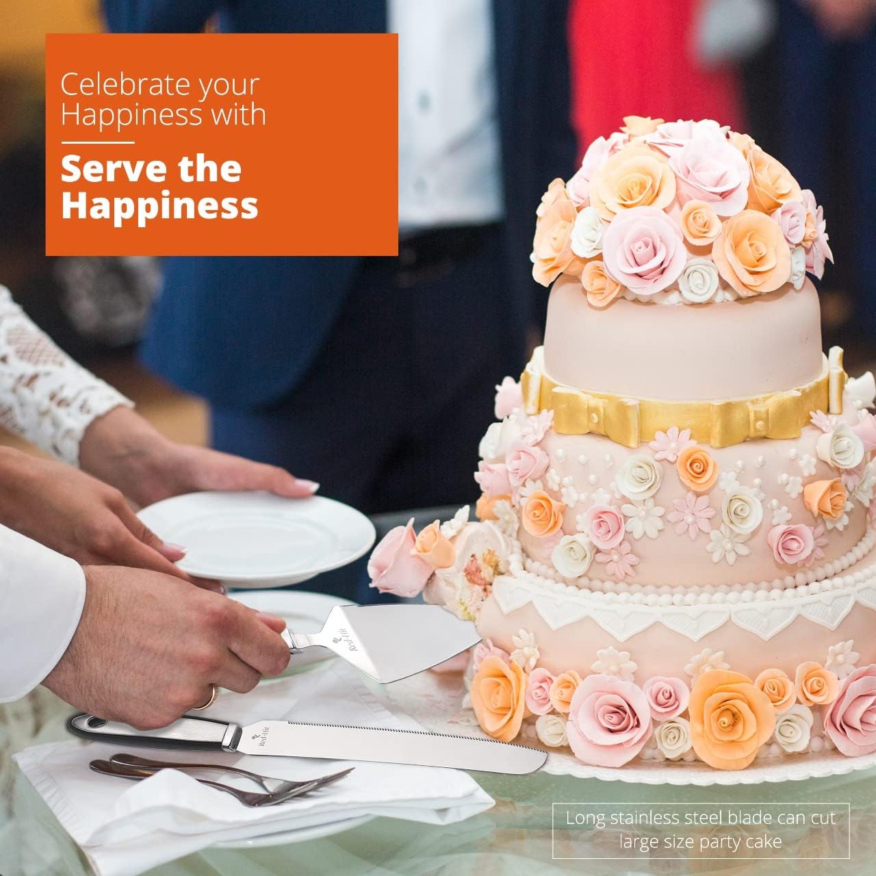• Innovative Design: This cutting tool features a serrated blade, perfect for smooth slicing. Our slice & serve spatula is dishwasher safe, So spend less time cleaning and get back to the party. The angled design of the cake spatula aids in easy serving