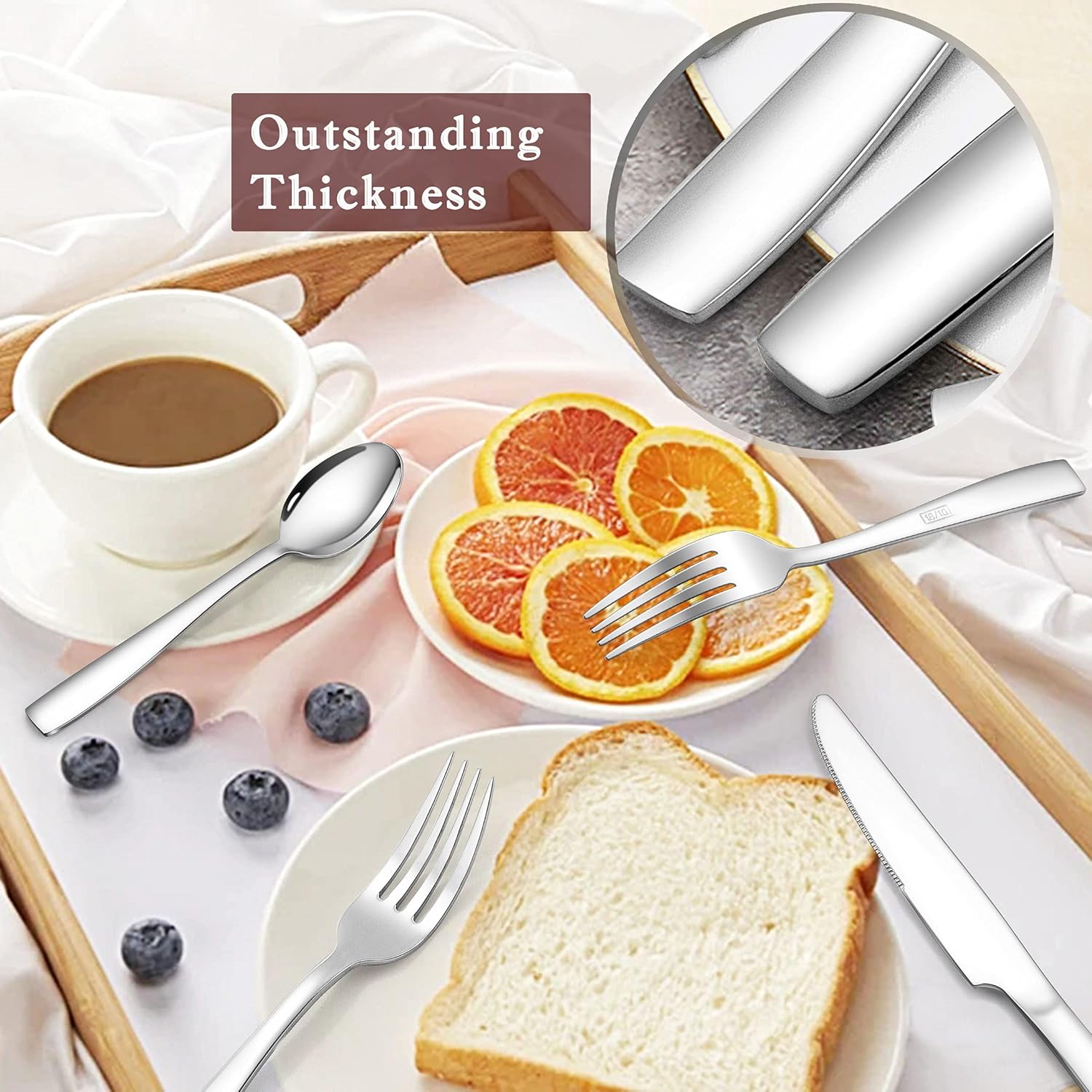• Perfect weight, our fancy silverware set feature with nice thickness and proper weight, neither too heavy and nor too light provides excellent balance, proper size with proper length which offers a comfortable grasp to both adults and teenagers