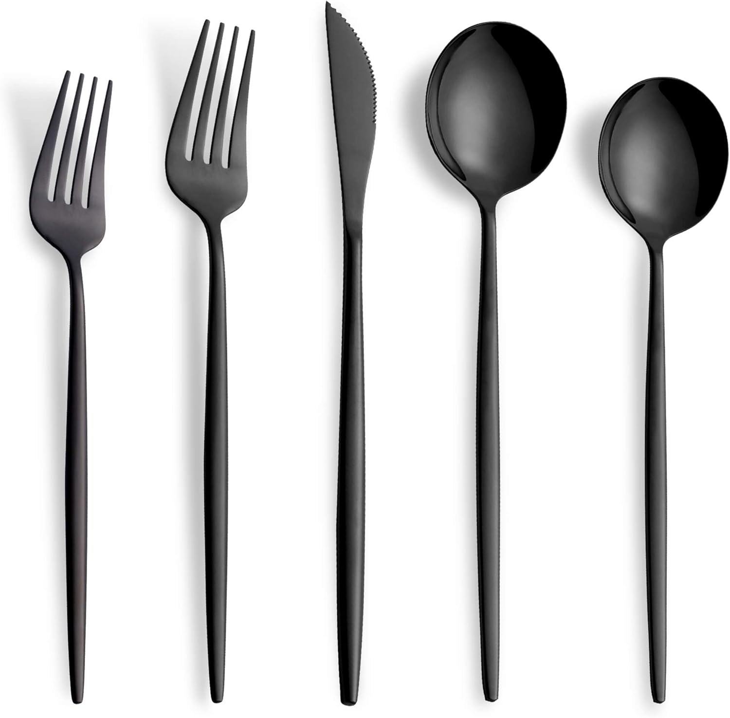 20 Piece Black Silverware Set,Stainless Steel Flatware Cutlery Set Service for 4 Including Forks Spoons Knives,Kitchen Utensil Set,Tableware for Home and Restaurant, Dishwasher Safe