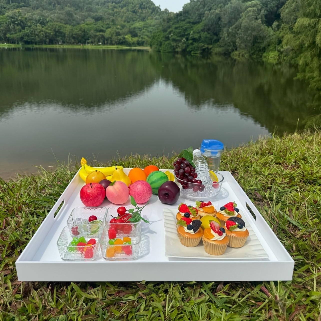 • Multifunctional: Serving tray for serving breakfast, appetizers, coffee, drinks, desserts, snacks, fruit, cheese, food; Decorative organizer tray for cosmetics, jewelry, remote, glasses, ornaments, magazines, Tray can be put on an ottoman, bed, coffee table and couch, It’s elegant to be put on any tabletop or countertop as an accessory