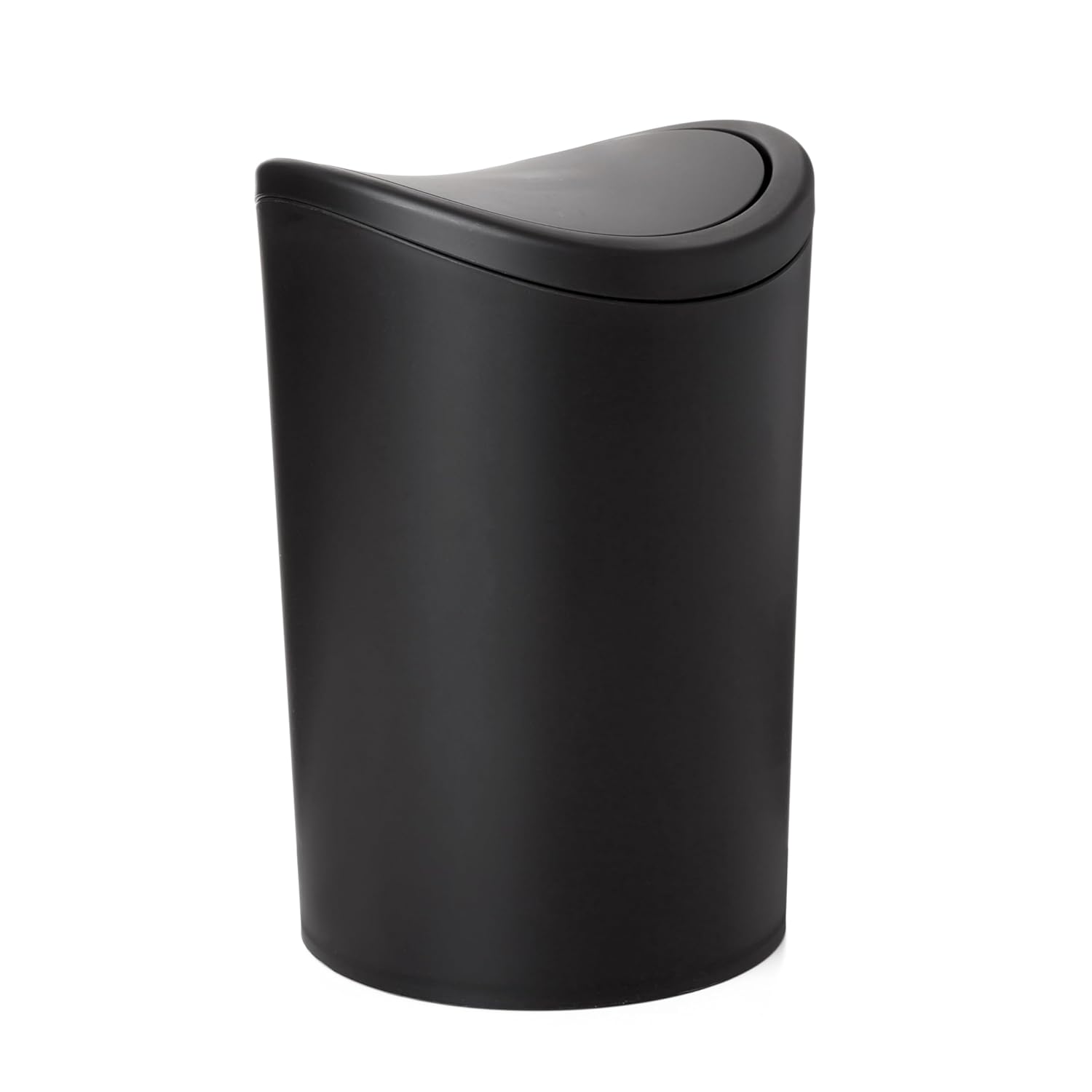 Superio Small Bathroom Trash Can with Lid, Modern Matte Black Mini Waste Bin with Swing Lid (1 1/2 Gallon, 6 Liter) Plastic Garbage Can for Kitchen, Bathroom, Bedroom, Office, Under Desk (1)