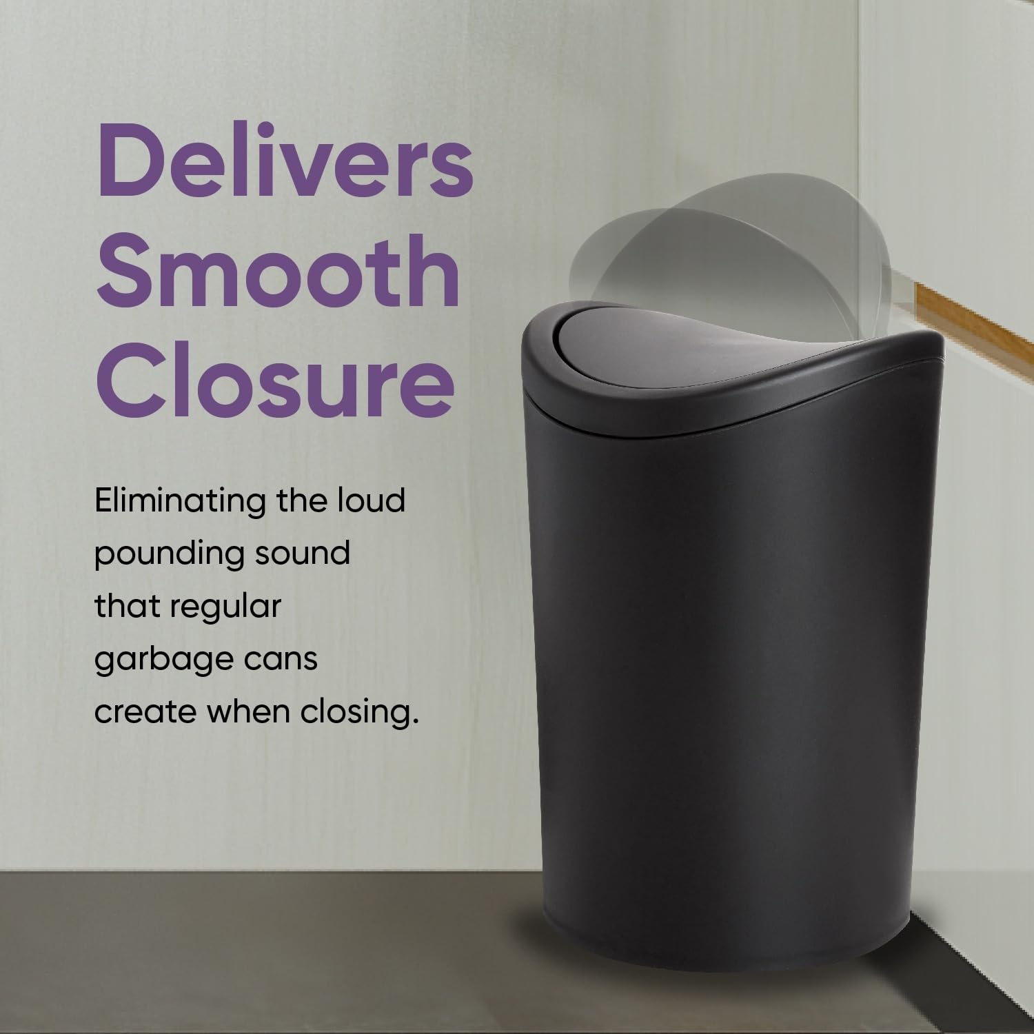 • Fits nearly everywhere - Keep your garbage concealed in cupboards, behind counters, or other compact locations to maximize your space. In your bathroom, bedroom, or workplace, this small swing top garbage can won't take up much space, yet it looks stylish and easily fits into tight locations.