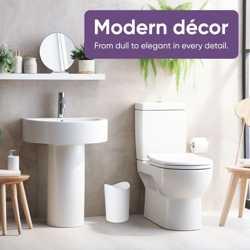 Superio MIni Bathroom Trash Can with Lid, Modern White Mini Waste Bin with Swing Lid (1 1/2 Gallon, 6 Liter) Plastic Garbage Can for Kitchen, Bathroom, Bedroom, Office, Under Desk (1, White)