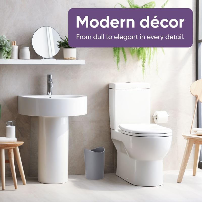 Superio MIni Bathroom Trash Can with Lid, Modern Grey Mini Waste Bin with Swing Lid (1 1/2 Gallon, 6 Liter) Plastic Garbage Can for Kitchen, Bathroom, Bedroom, Office, Under Desk (1, Grey)