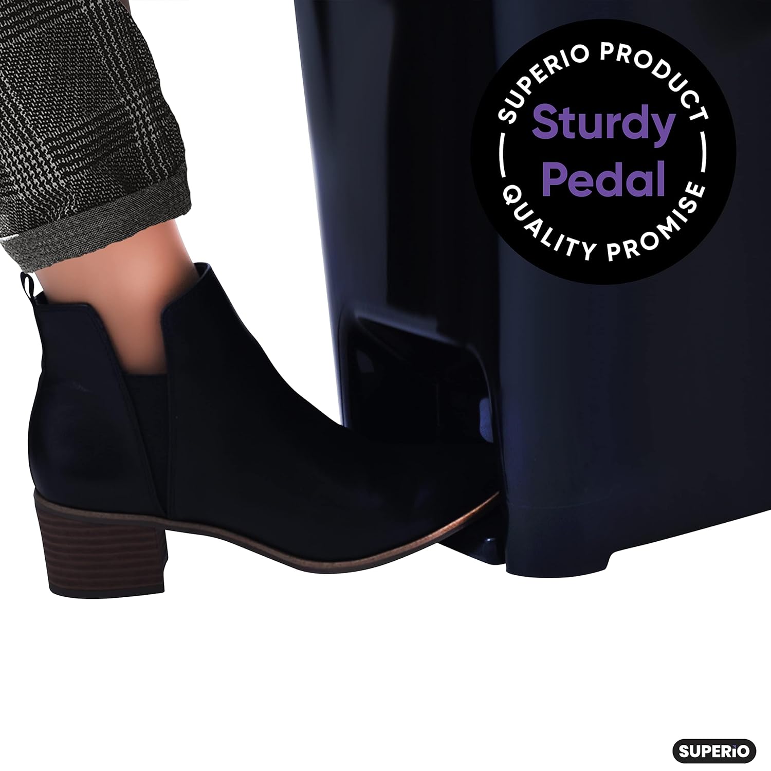 • FOOT PEDAL DESIGN - With a smooth, robust step, the Superio slim step-on trash can is the perfect addition to any room. It offers hands-free disposal without sacrificing the volume and quality of your trash disposal. The strong pedal is engineered for an easy step and keeps the lid closed after use.