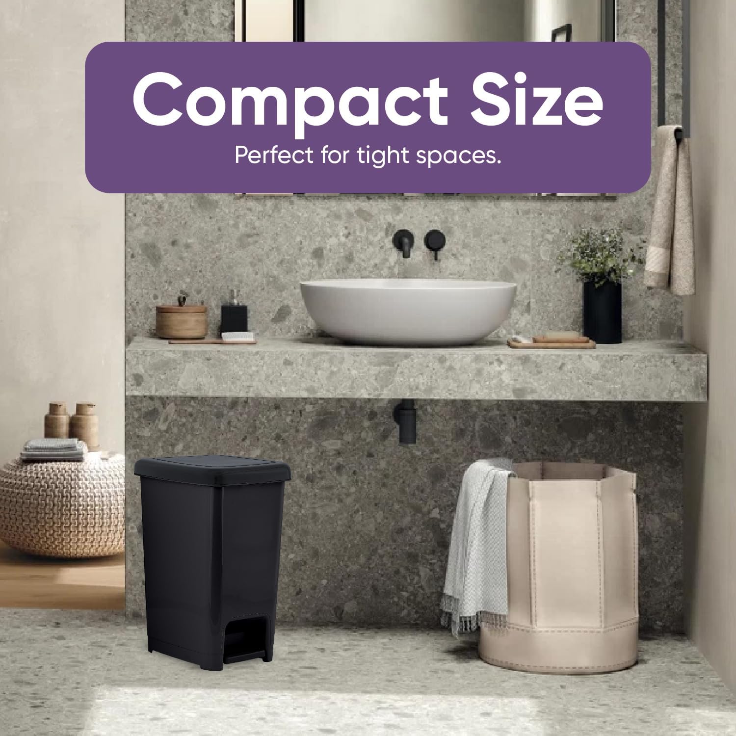 • EASY TO CLEAN - Get rid of trash quickly and easily with our step-on trash can. It is ergonomically designed for portability, which makes it perfect for your kitchen and bathroom.