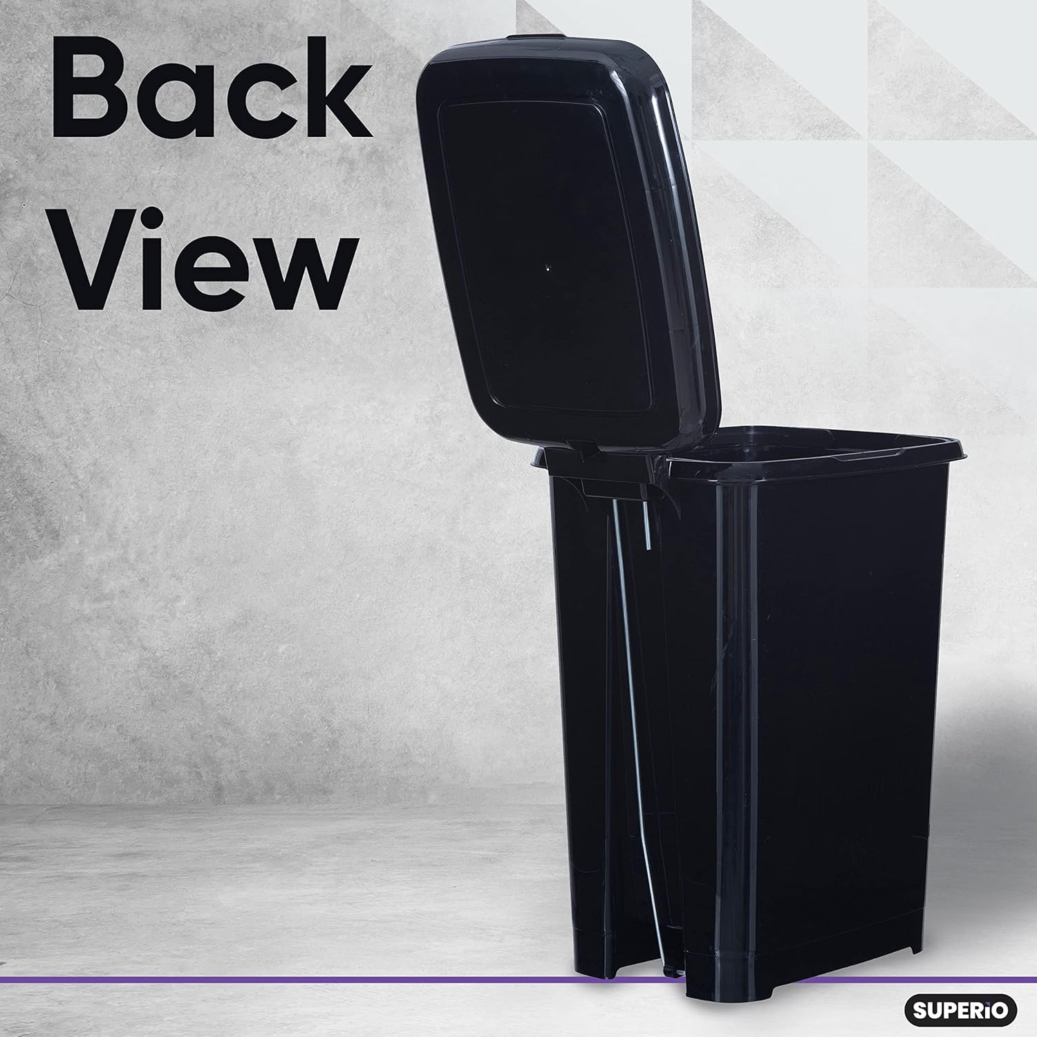 Superio Slim Trash Can with Foot Pedal – 10.5 Gallon Step-On Trash Can with Lid, Large Plastic Garbage Can, Trashcan for Bathroom, Kitchen, Office, Bedroom, Dorm Room, Patio, – Black, 2