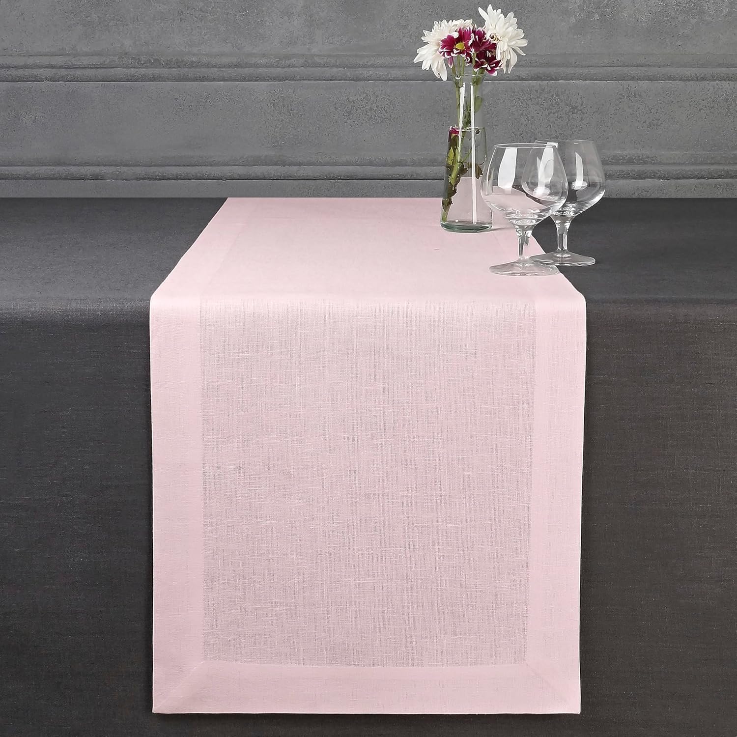 • PREMIUM EUROPEAN LINEN - This pastel pink table runner is made from 100% European flax linen, not blended with cheaper materials like cotton or polyester. Pure linen is an exceptionally durable midweight, hypoallergenic (good for people with allergies) fabric which outperforms cotton in tensile strength and abrasion resistance.