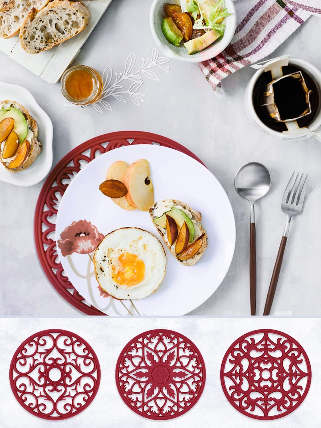• Anti-Slip & Multi-Use: Can be used not only as a placemat to protect the surface of your kitchenware and tableware from scalding, but also as an anti-slip mat for opening bottles, and an anti-scalding mat for pot handles