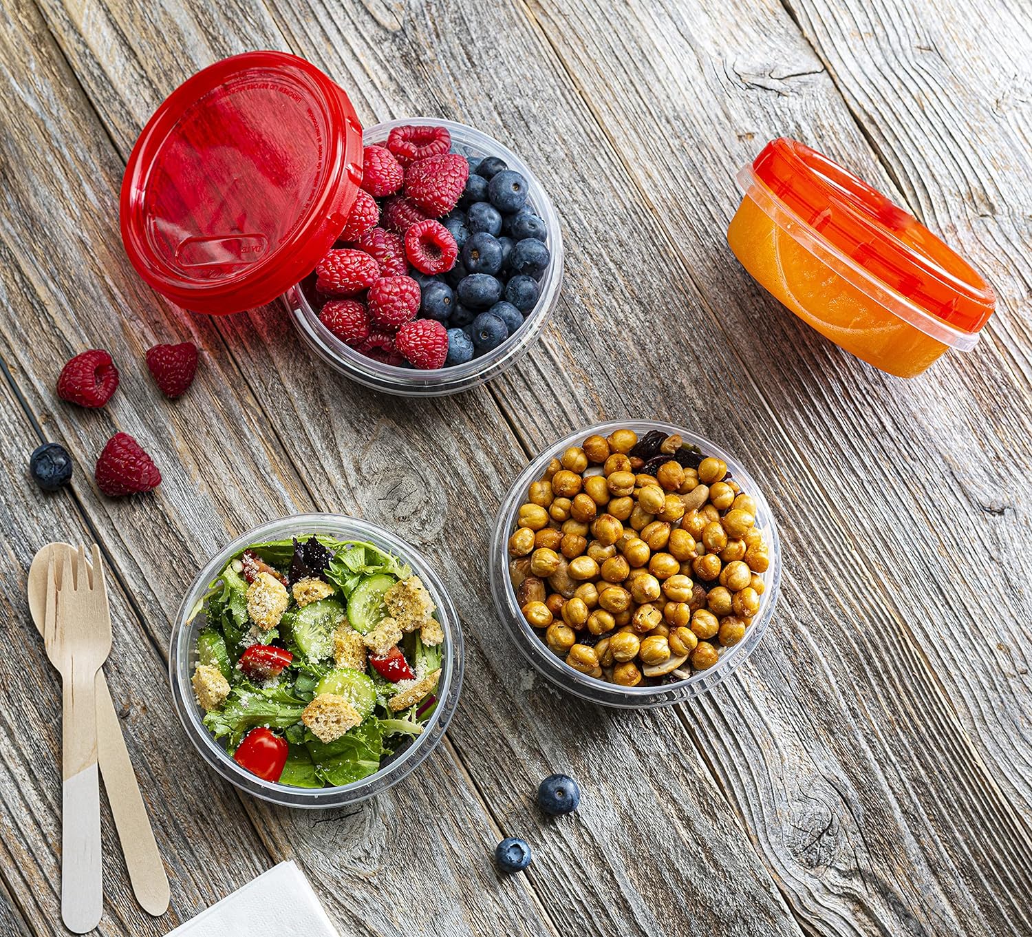 • 8 oz 10 Pack Twist Top Containers Clear bottom With Red Top Twist on Lids Reusable, Stackable, Food Storage Freezer Container