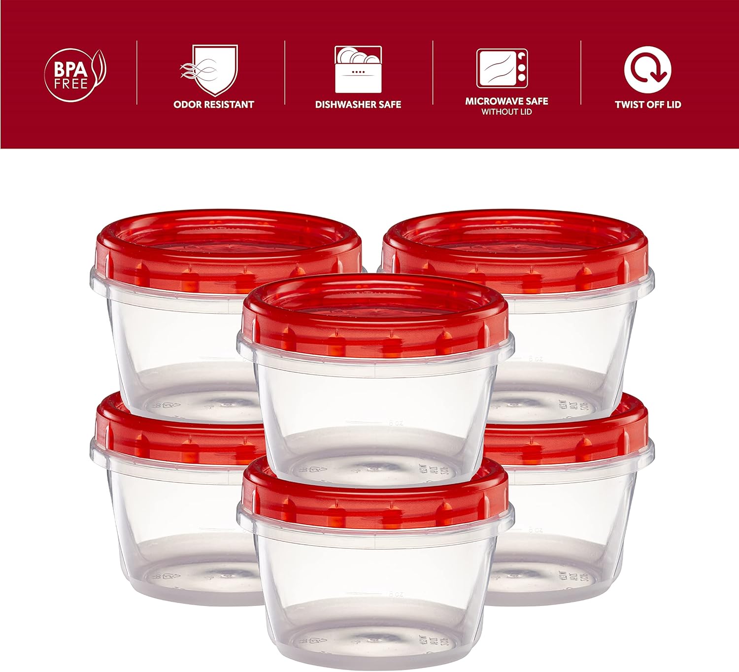 • 16 oz 10 Pack Twist Top Containers Clear bottom With Red Top Twist on Lids Reusable, Stackable, Food Storage Freezer Container
