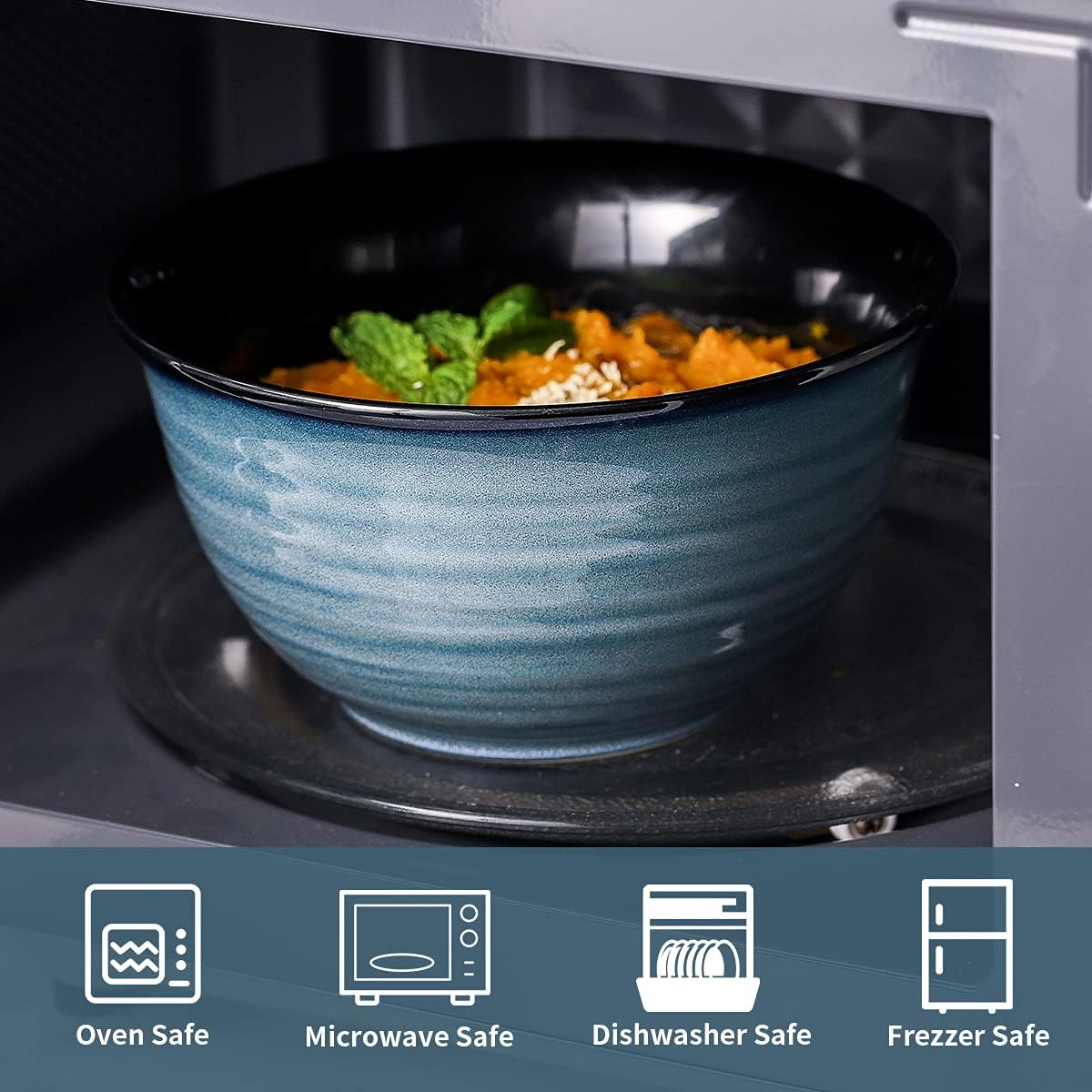 Hasense Soup Bowls for Kitchen, 40 Ounce Large Cereal Bowls, 7 Inch Ceramic Serving Bowls for Salad Pasta Soup Popcorn, Dishwasher & Microwave Safe, Set of 4(Blue)