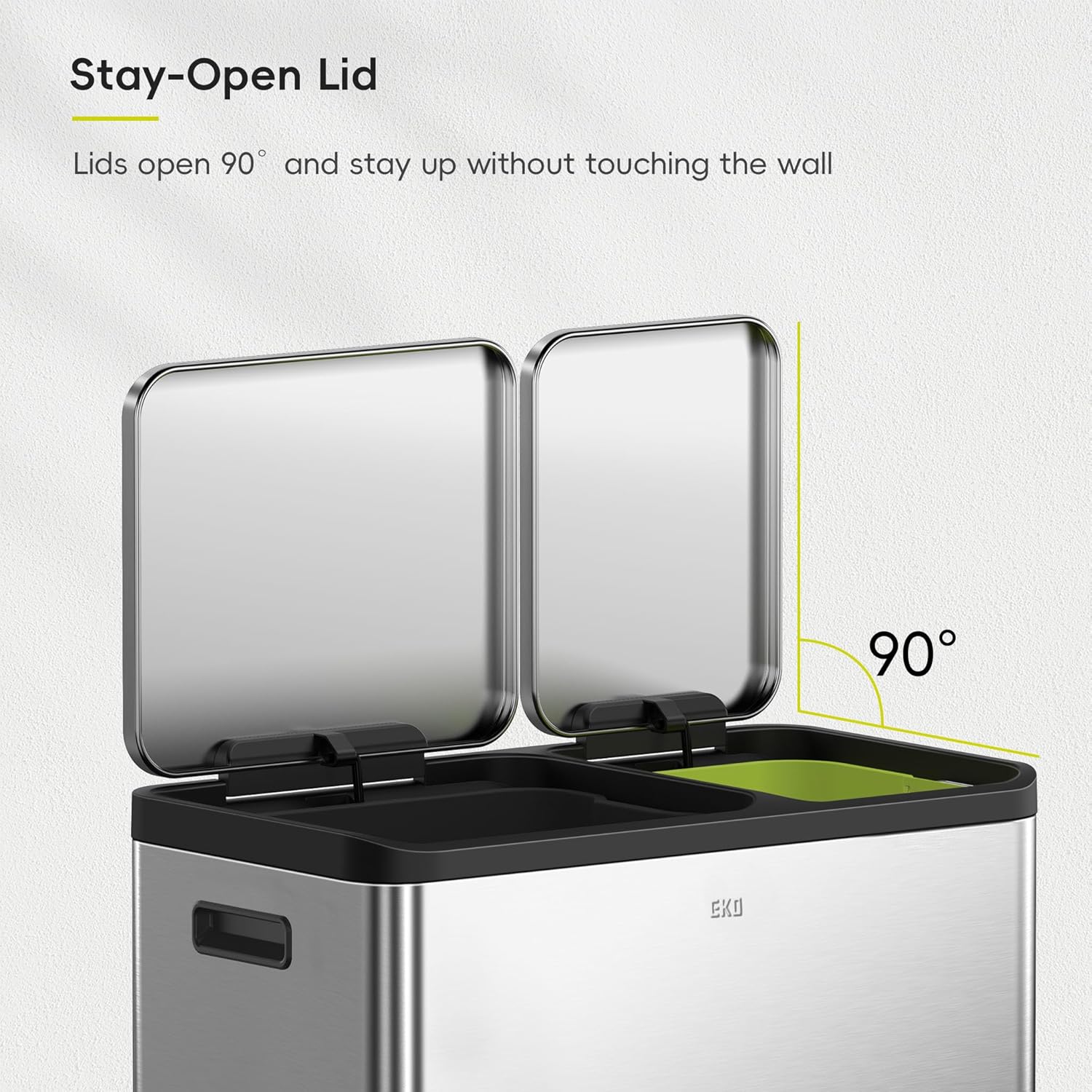 EKO EcoCasa Stainless Steel Dual Step Trash Can for Recycling, 30L+20L Rectangular Kitchen Trash Can, Independent Pedals and Lids, Soft Close and Fingerprint Resistant