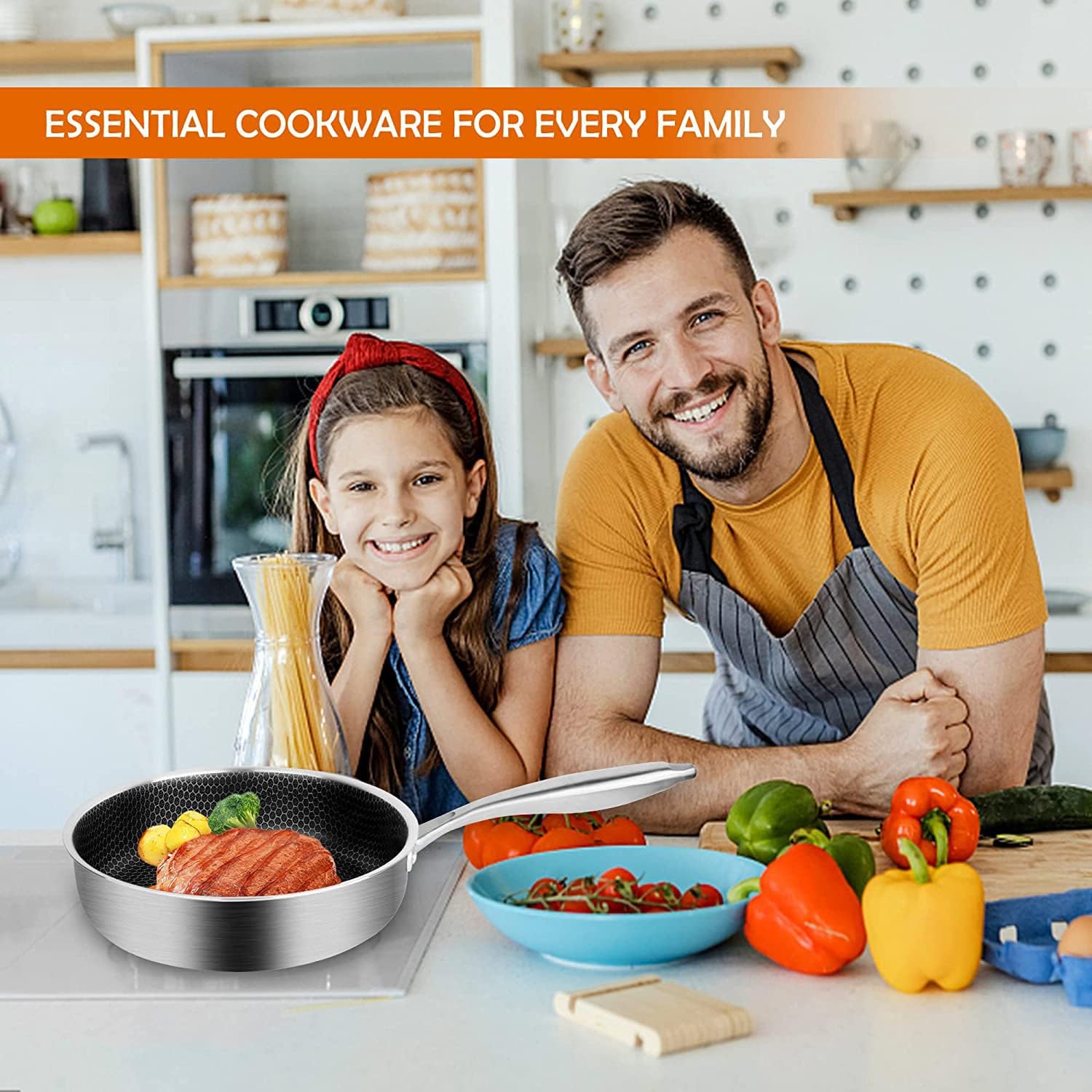 • 【FAST & EVEN HEATING】The entire fryingpan body is all tri-ply bonded construction ensures optimal heat distribution for fast even heating and energy saving,will spend 20% Gas or electricity less that you have spend in cooking before