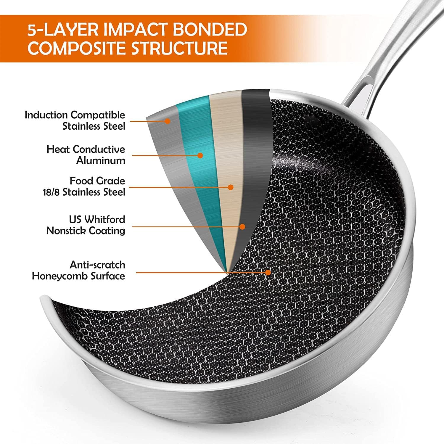 • 【Suitable for All Stove】Works on all cook stove tops, include induction, gas, electric, halogen, glass, and ceramic. The high quality stainless steels and the aluminum core make it dishwasher-safe and oven-safe up to 500°F
