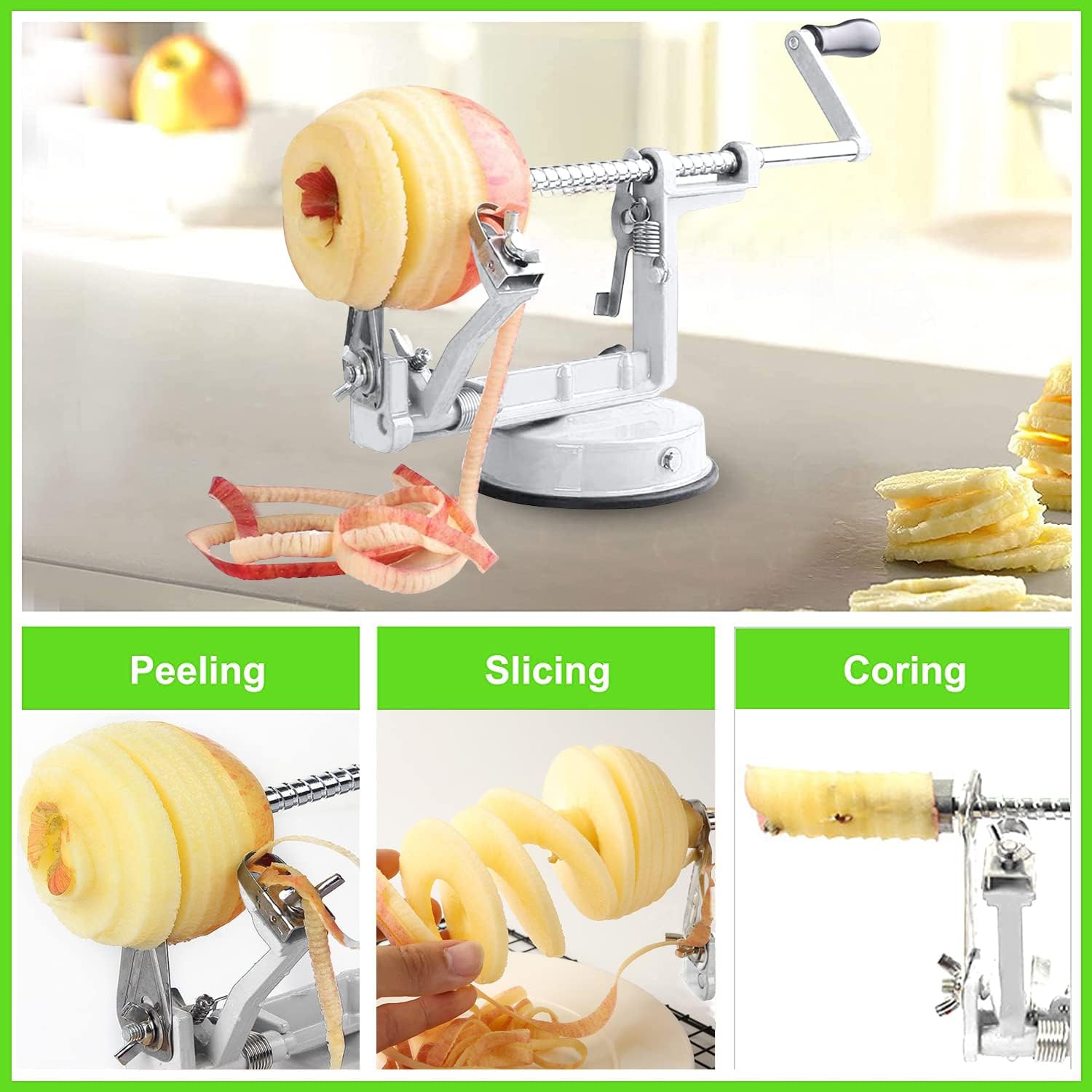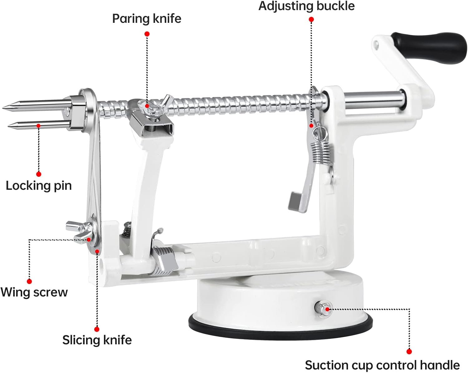 Apple Peeler Corer, Long lasting Chrome Cast Magnesium Alloy Apple Peeler Slicer Corer with Stainless Steel Blades and Powerful Suction Base for Apples and Potato(White)