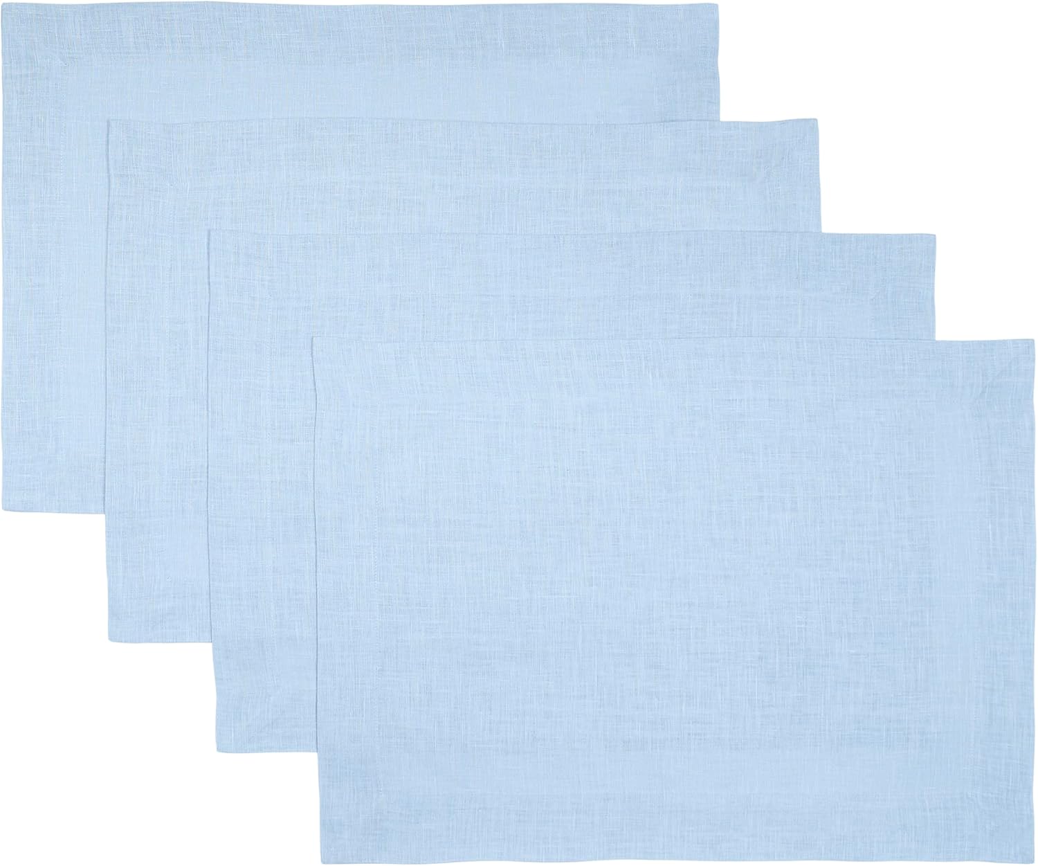 • PREMIUM EUROPEAN LINEN - These powder blue placemats are made from 100% European flax linen, not blended with cheaper materials like cotton or polyester. Pure linen is an exceptionally durable midweight, hypoallergenic (good for people with allergies) fabric which outperforms cotton in tensile strength and abrasion resistance.