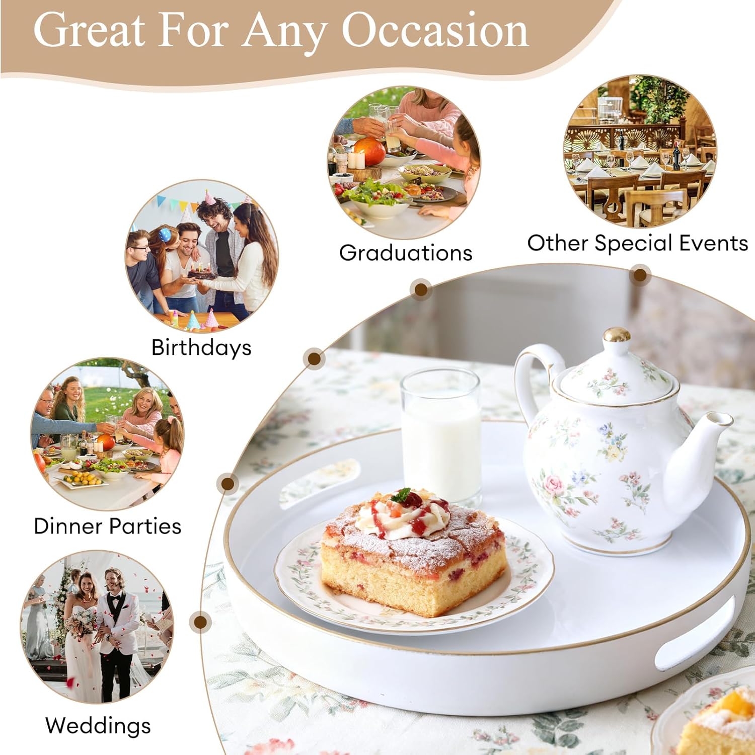 • [Classy & Elegant] - Stunning White coating + Chic gold top rim, this decent round tray can show a sense of understated luxury, greatly matching with both modern & vintage styled items.