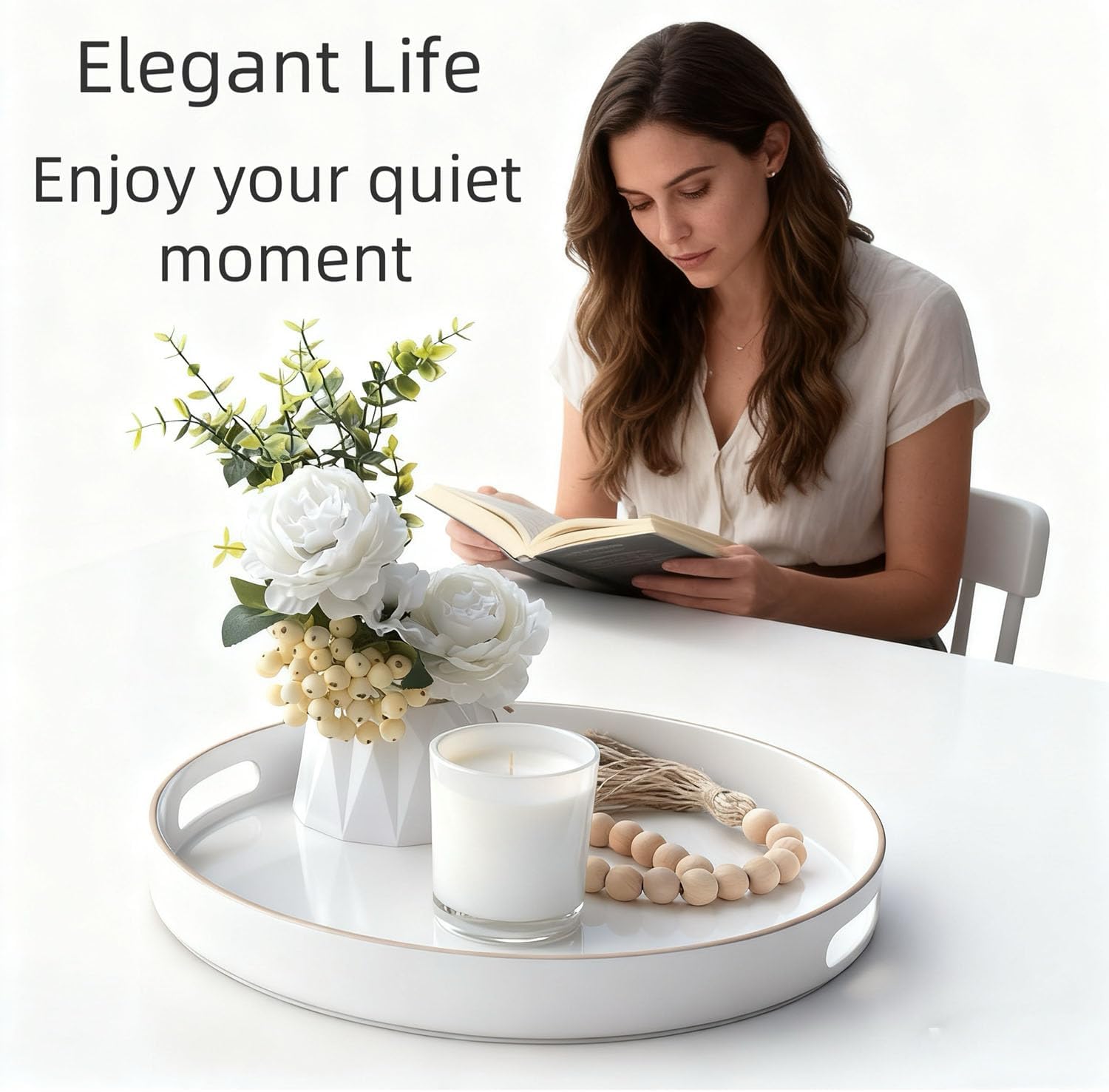 Zosenley Decorative Tray, Round Plastic Tray with Handles, Modern Vanity Tray and Serving Tray for Ottoman, Coffee Table, Kitchen and Bathroom, Size 13” (White)