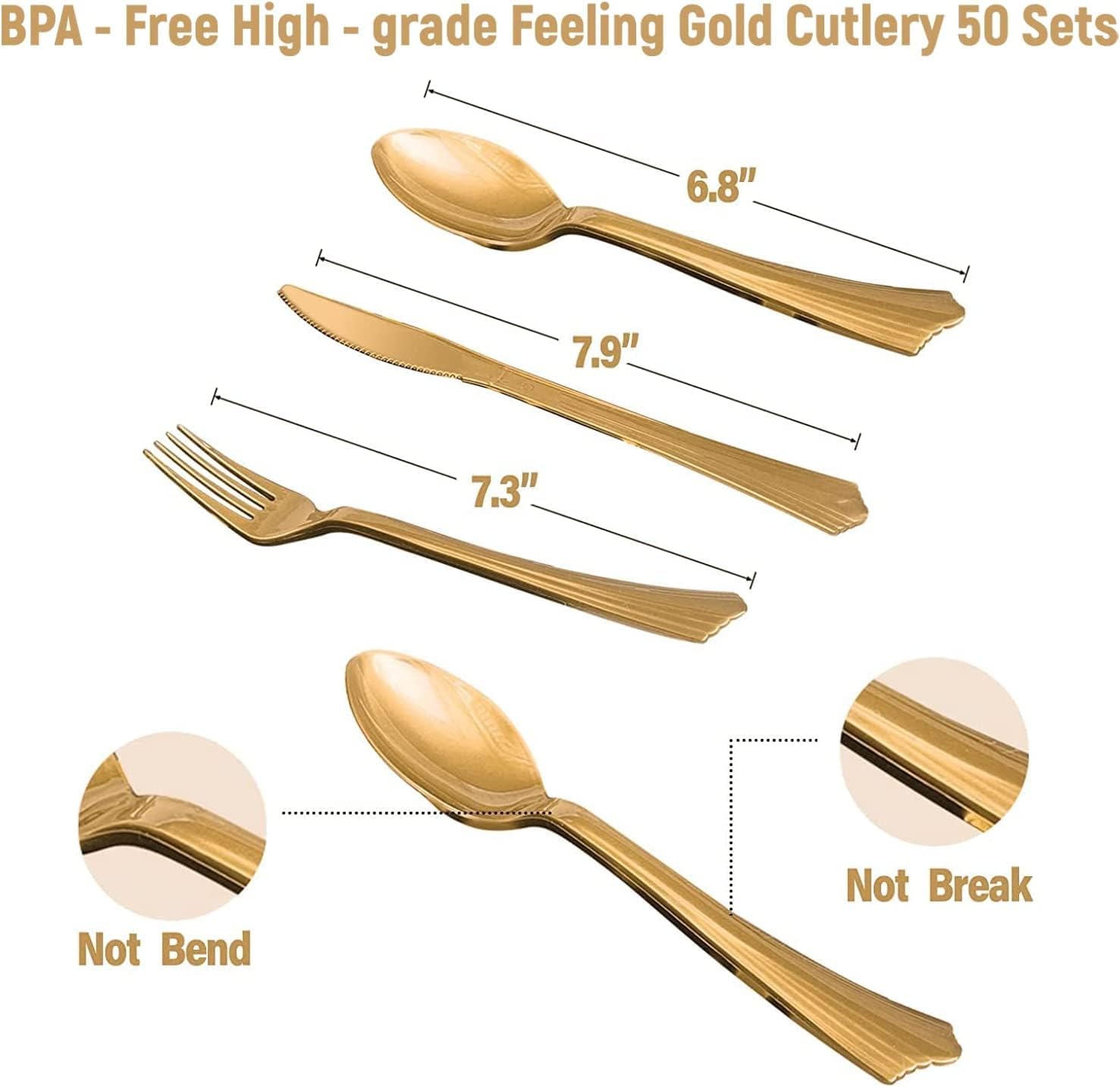 • ✔「Sever for 50 Guests」 This blue paper plates set including 9" dinner paper plates *50, 7" paper dessert plates *50, 9oz paper cups *50 and luncheon napkins (3-ply, 6.5" x 6.5") *50, 50 sets of heavy duty gold plastic cutlery (50 forks, 50 spoons, 50 knives)