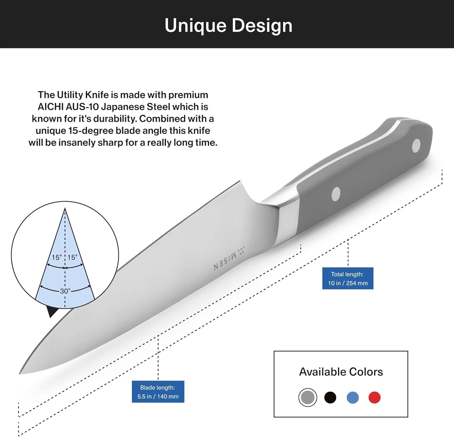 Misen 5.5" Utility Knife – High Carbon Japanese AUS-10 Stainless Steel – Hybrid German & Japanese Blade – Precision Kitchen Knife for Professionals & Home Cooks – Ultimate Cutting Performance - Gray