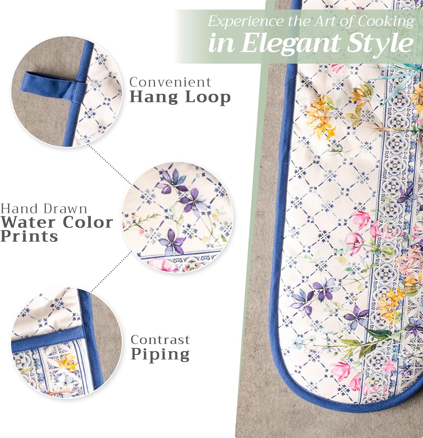 • Package includes: Includes 1 double oven mitt sized 7"x35". Perfect for handling hot cookware safely while adding a touch of European elegance to your kitchen. Designed in Europe and made in India with care