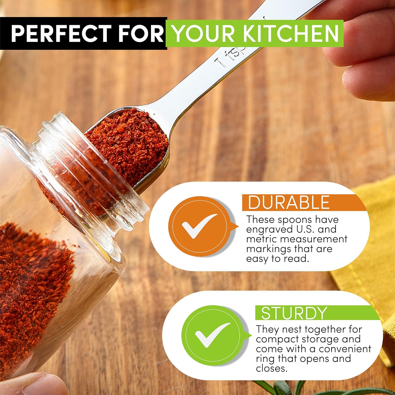 • Complete, Accurate Set To Measure Spices, Medicine And More - Measure precise quantity of ingredients with these metal measuring spoons to get great results with cooking and baking.