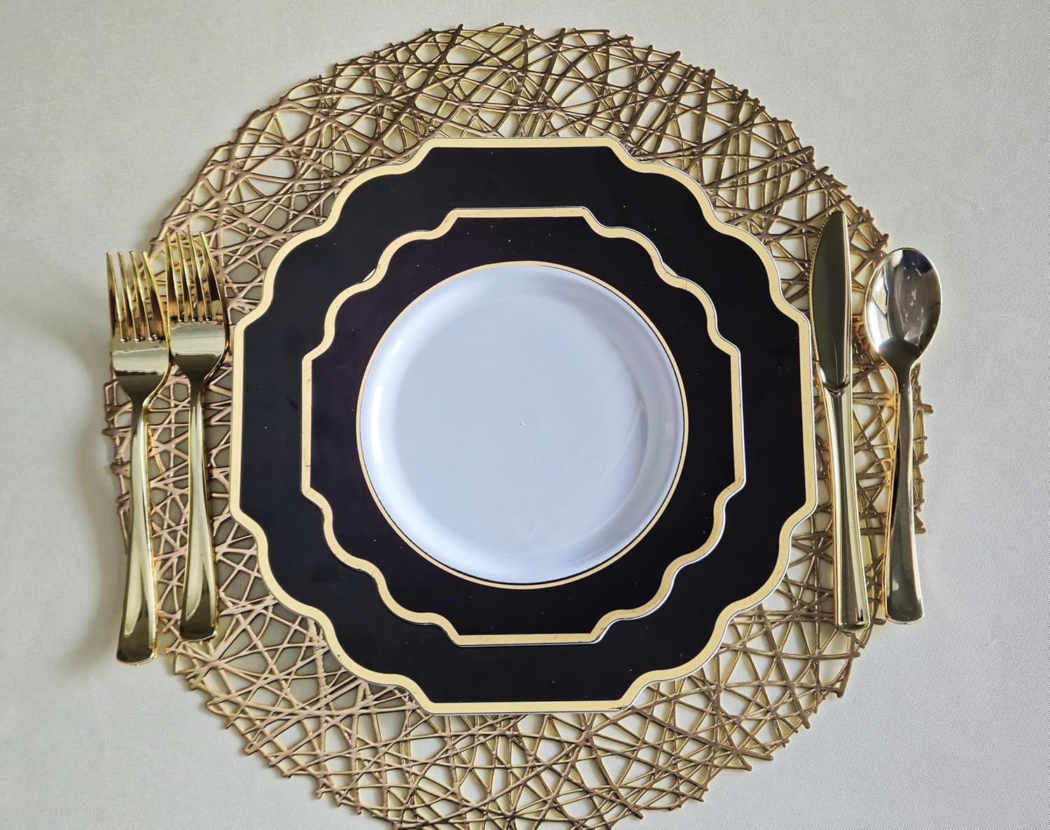 " OCCASIONS " 80 Plates Pack,(40 Guests) Heavyweight Premium Wedding Party Disposable Plastic Plates Set -40 x 10.5'' Dinner + 40 x 8'' Salad/Dessert (Imperial in Black & Gold)