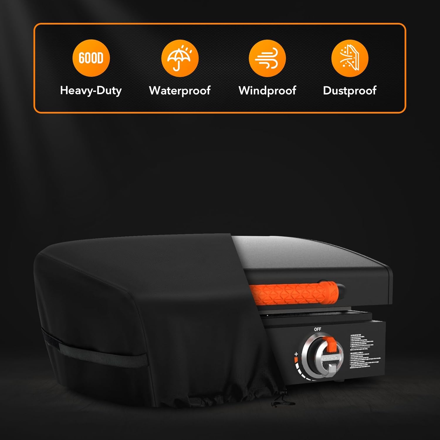 • Griddle cover comes in a neutral black color that won't clash with your backyard or patio décor. Because this BBQ Griddle cover is form-fitted, they provide a sleek, stylish and polished appearance.