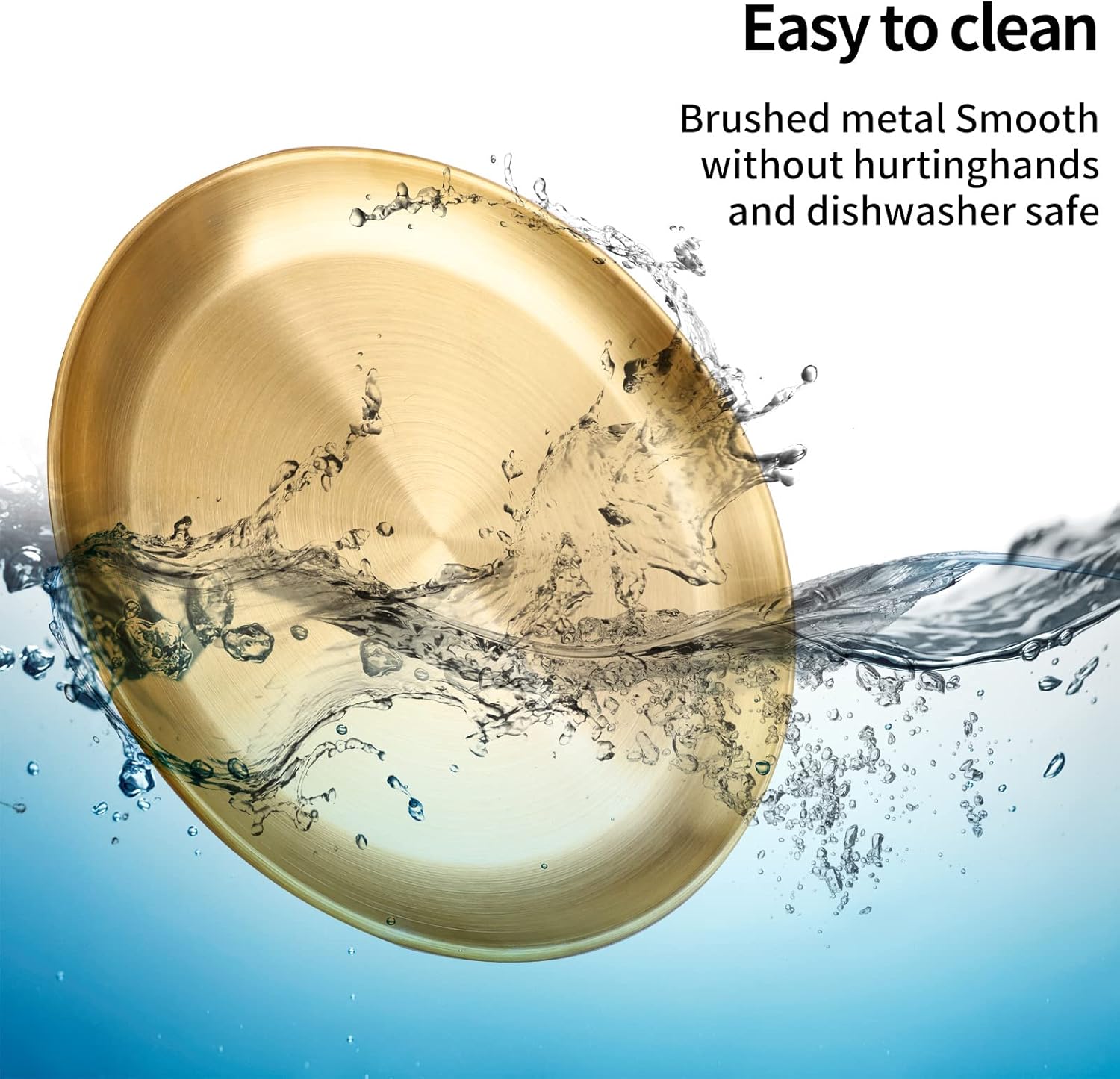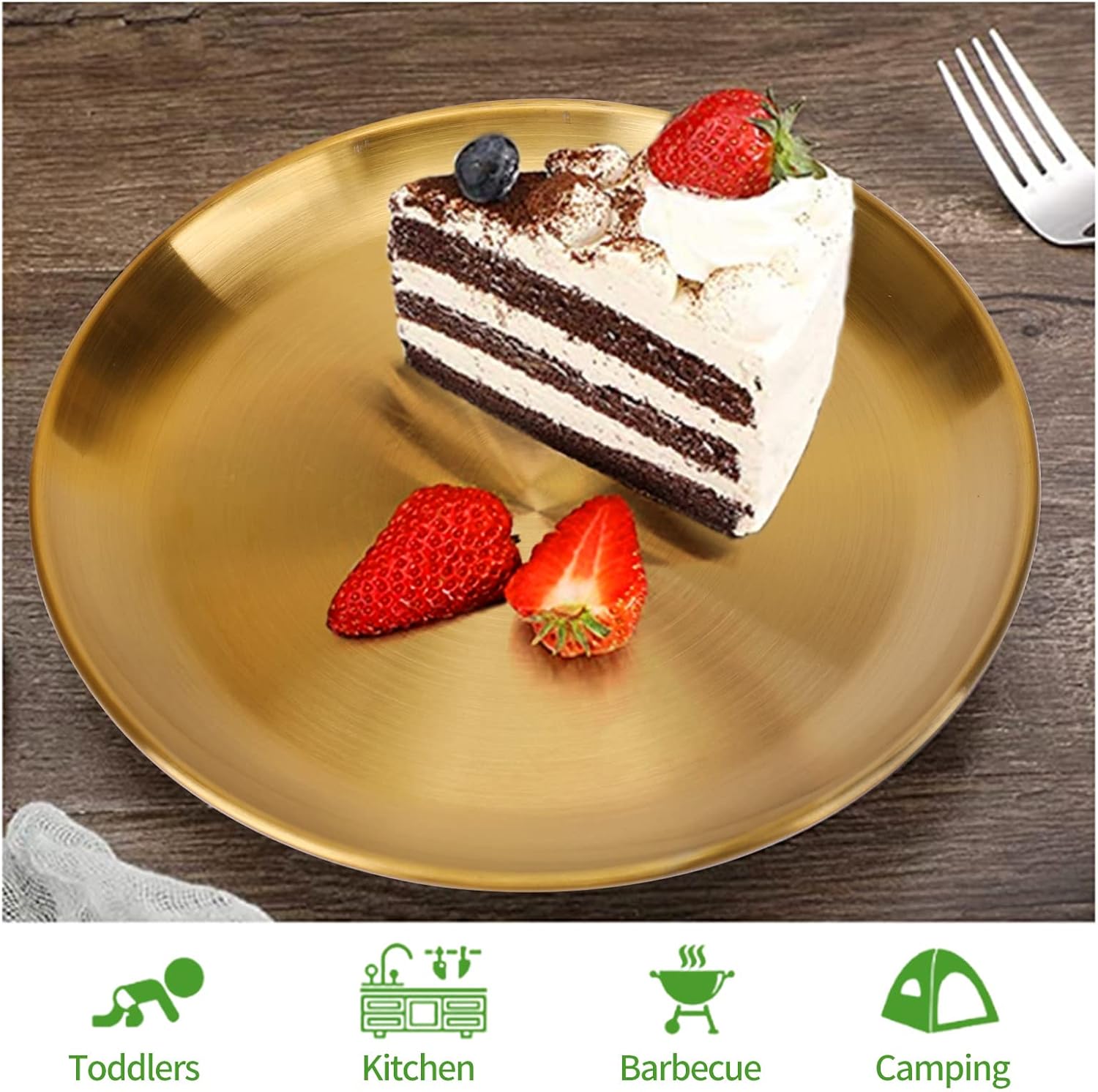 • [SHATTERPROOF] Unbreakable stainless steel dinner plates won’t turn into pieces hurting you, Smooth round edges without rough spot won't hurt your soft skin , Appropriate size and lightweight are easy handle by hands.Round dinner plates are made of high quality stainless steel with excellent rust resistance, BPA free and non-toxic, easy to care and durable.