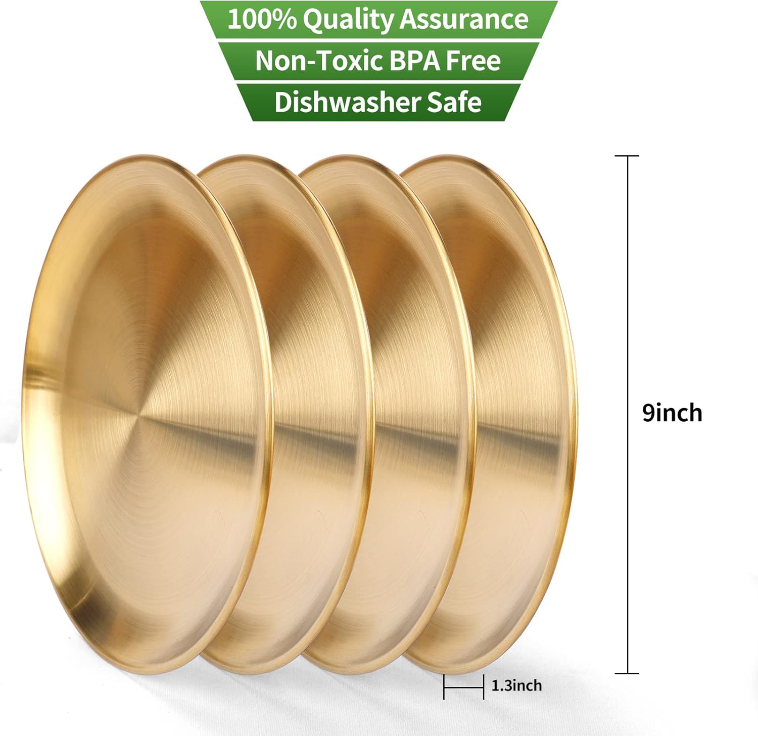 Stainless Steel Dinner Plate, 304Rutian 9" Metal Round Dinner Dishes for Adults, Reusable and Dishwasher Safe, Serving Camping Salad Plate for Home,Outdoor Camping, Snack,and BBQ,Set of 4