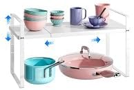 • 【Versatile storage solutions】This expandable shelf organizer is ideal for use in the kitchen, pantry and cupboard. Use it as a kitchen cabinet shelf to neatly store plates, bowls or any other items you need to keep organized. Great for your counter and pantry storage