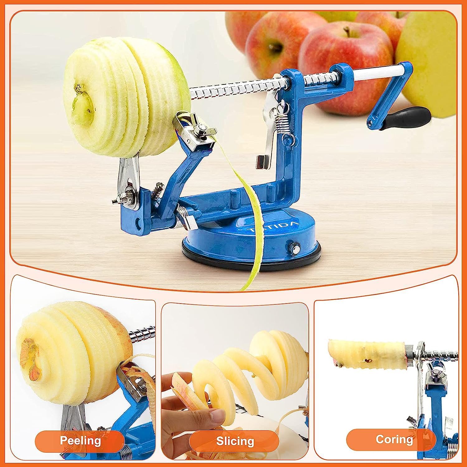 Apple Peeler Corer, Long lasting Chrome Cast Iron Apple Peeler Slicer Corer with Stainless Steel Blades and Powerful Suction Base for Apples and Potato(Blue)