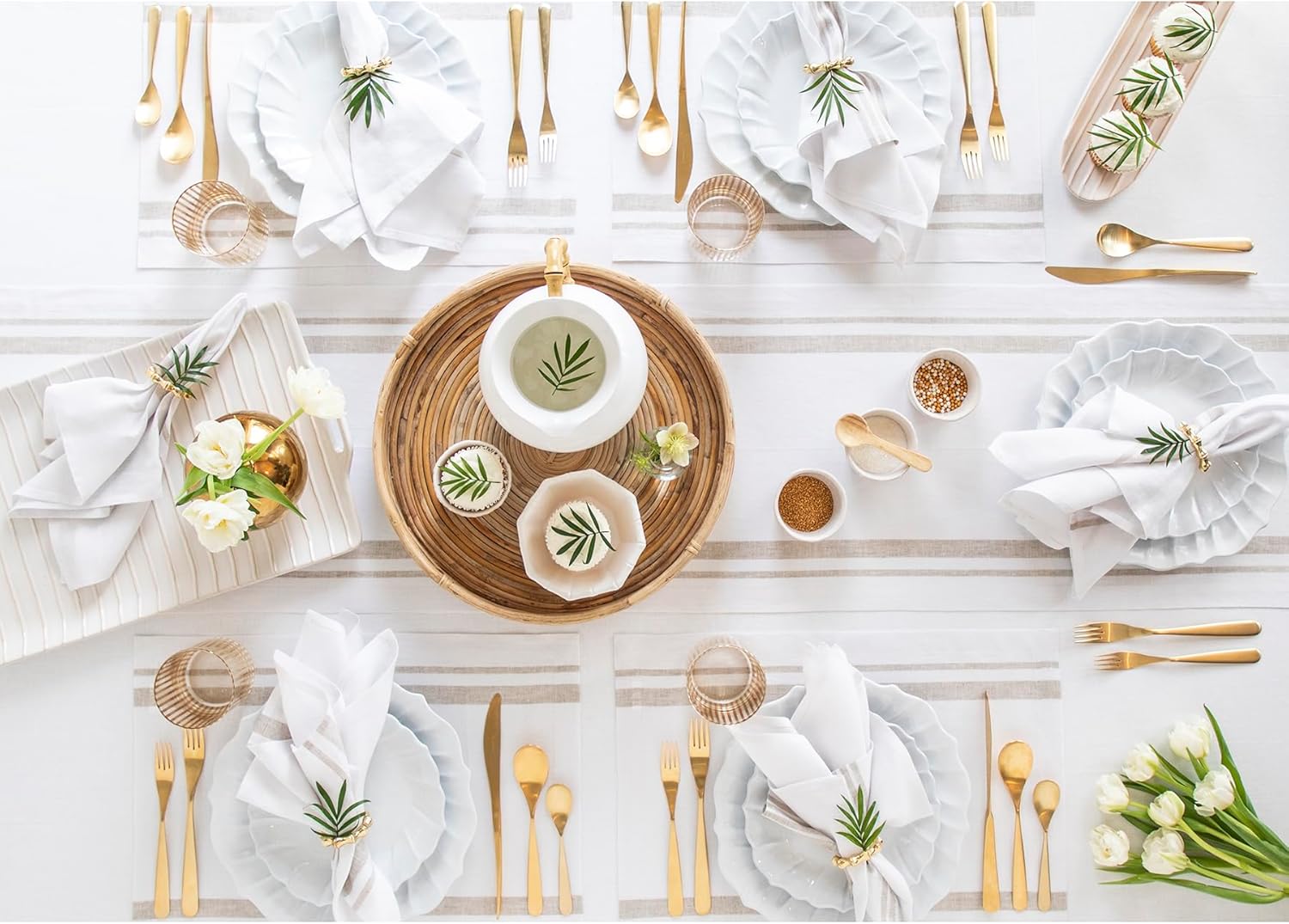 • 𝗖𝗼𝗺𝗽𝗼𝘀𝗶𝘁𝗶𝗼𝗻 𝗮𝗻𝗱 𝗖𝗿𝗮𝗳𝘁𝘀𝗺𝗮𝗻𝘀𝗵𝗶𝗽 : 100% Pure European Flax Linen Natural and White Thanksgiving Table Runner - 𝗙𝗿𝗲𝗻𝗰𝗵 𝗦𝘁𝗿𝗶𝗽𝗲 | Handcrafted By Skilled Artisans.