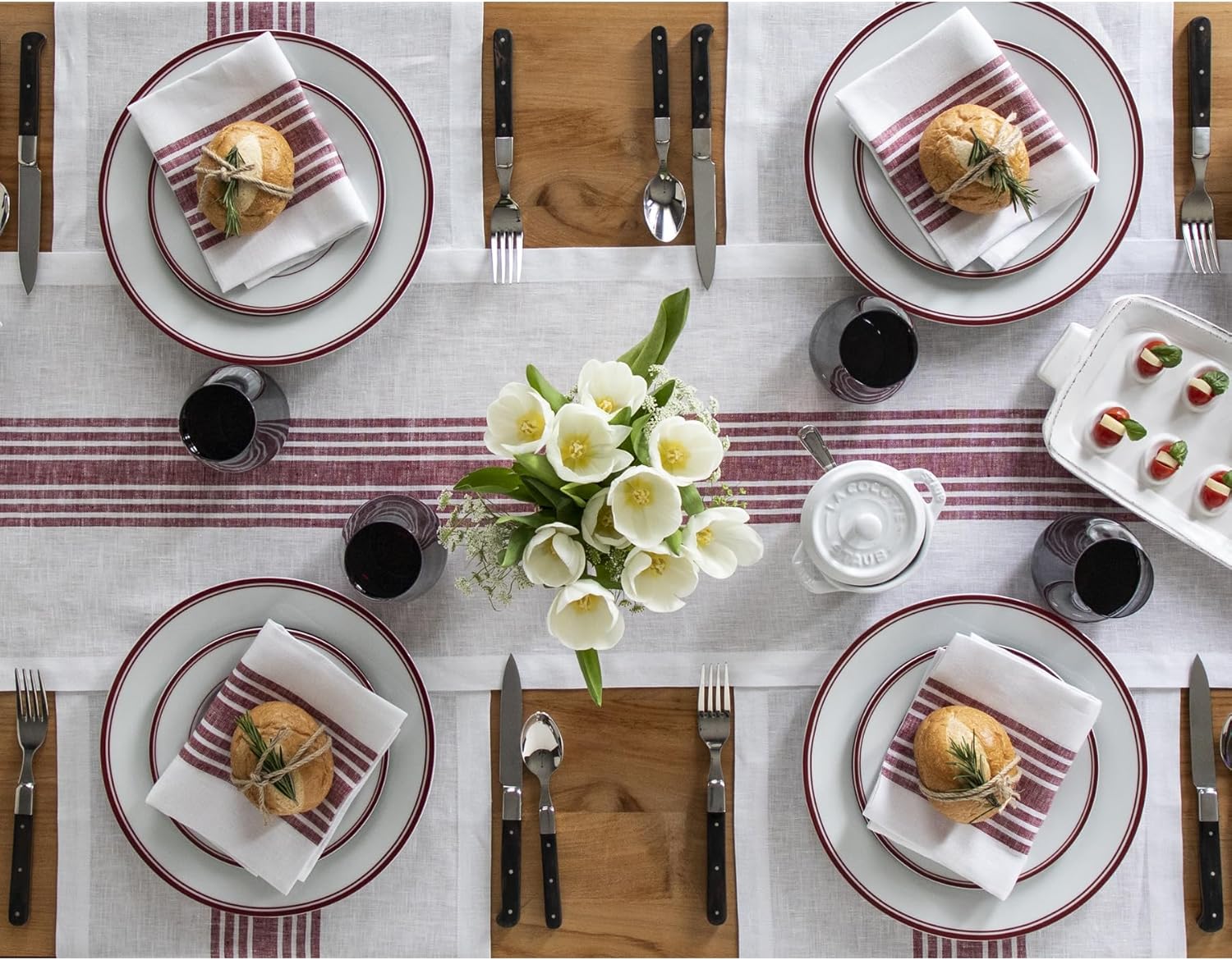 Solino Home Linen Table Runner 120 Inches Long - 100% Pure Linen Burgundy and White Farmhouse Table Runner 14 x 120 Inch for Dining, Fall, Autumn, Thanksgiving, Christmas