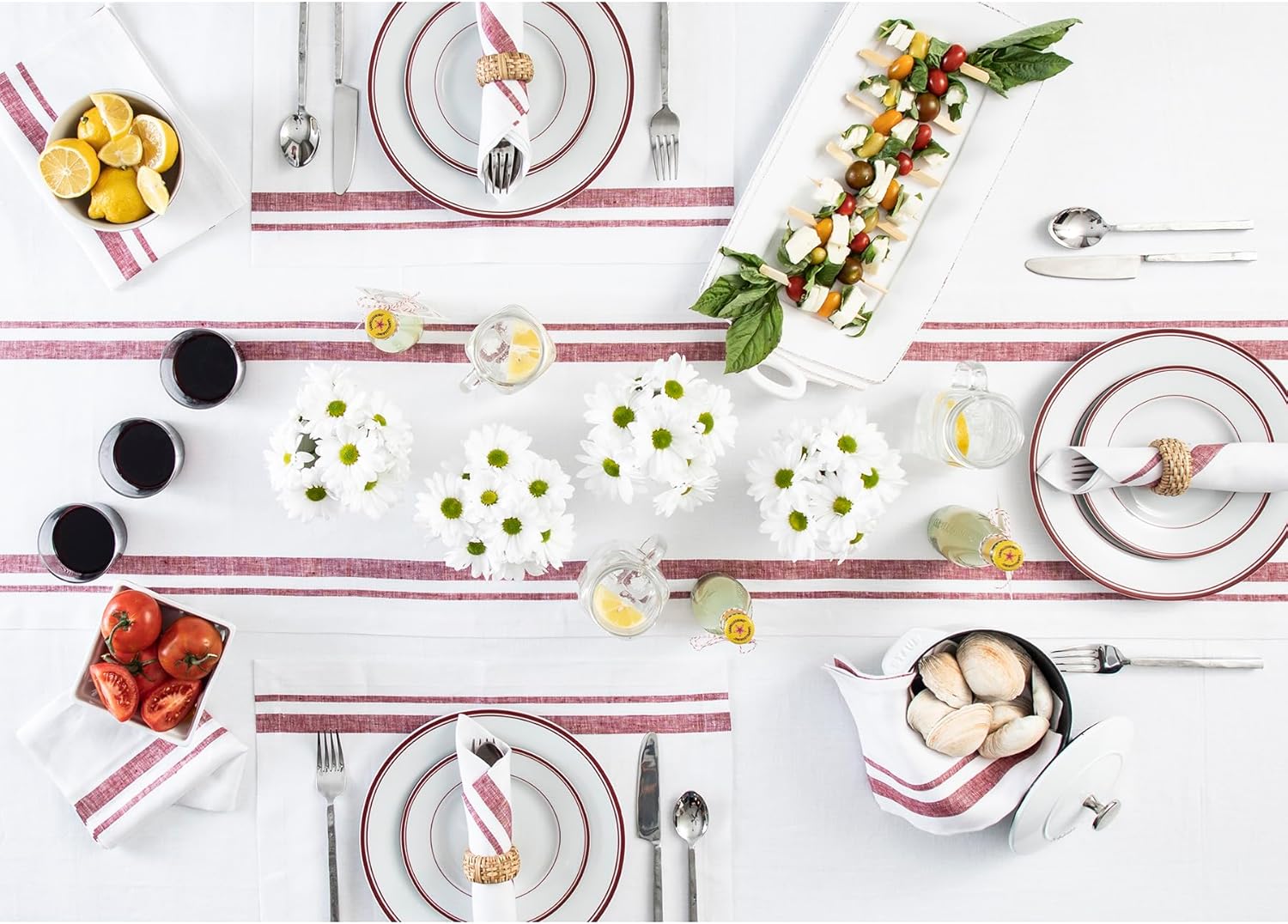 • 𝗖𝗼𝗺𝗽𝗼𝘀𝗶𝘁𝗶𝗼𝗻 𝗮𝗻𝗱 𝗖𝗿𝗮𝗳𝘁𝘀𝗺𝗮𝗻𝘀𝗵𝗶𝗽 : 100% Pure European Flax Linen Burgundy and White Christmas Table Runner - 𝗙𝗿𝗲𝗻𝗰𝗵 𝗦𝘁𝗿𝗶𝗽𝗲 | Handcrafted By Skilled Artisans.