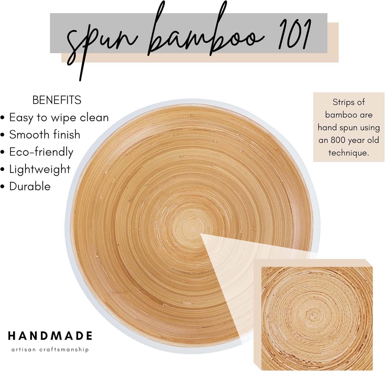 • Add the warmth of handmade, natural materials to your home while keeping a modern, sleek look and feel with this spun bamboo bowl, whether you need a fruit bowl for kitchen counter, decorative bowl for the living room, or centerpiece for the dining table.