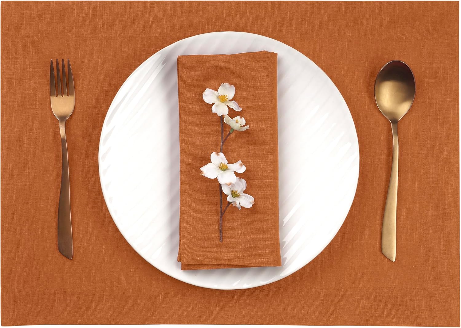 • PREMIUM EUROPEAN LINEN - These rust placemats are made from 100% European flax linen, not blended with cheaper materials like cotton or polyester. Pure linen is an exceptionally durable midweight, hypoallergenic (good for people with allergies) fabric which outperforms cotton in tensile strength and abrasion resistance.