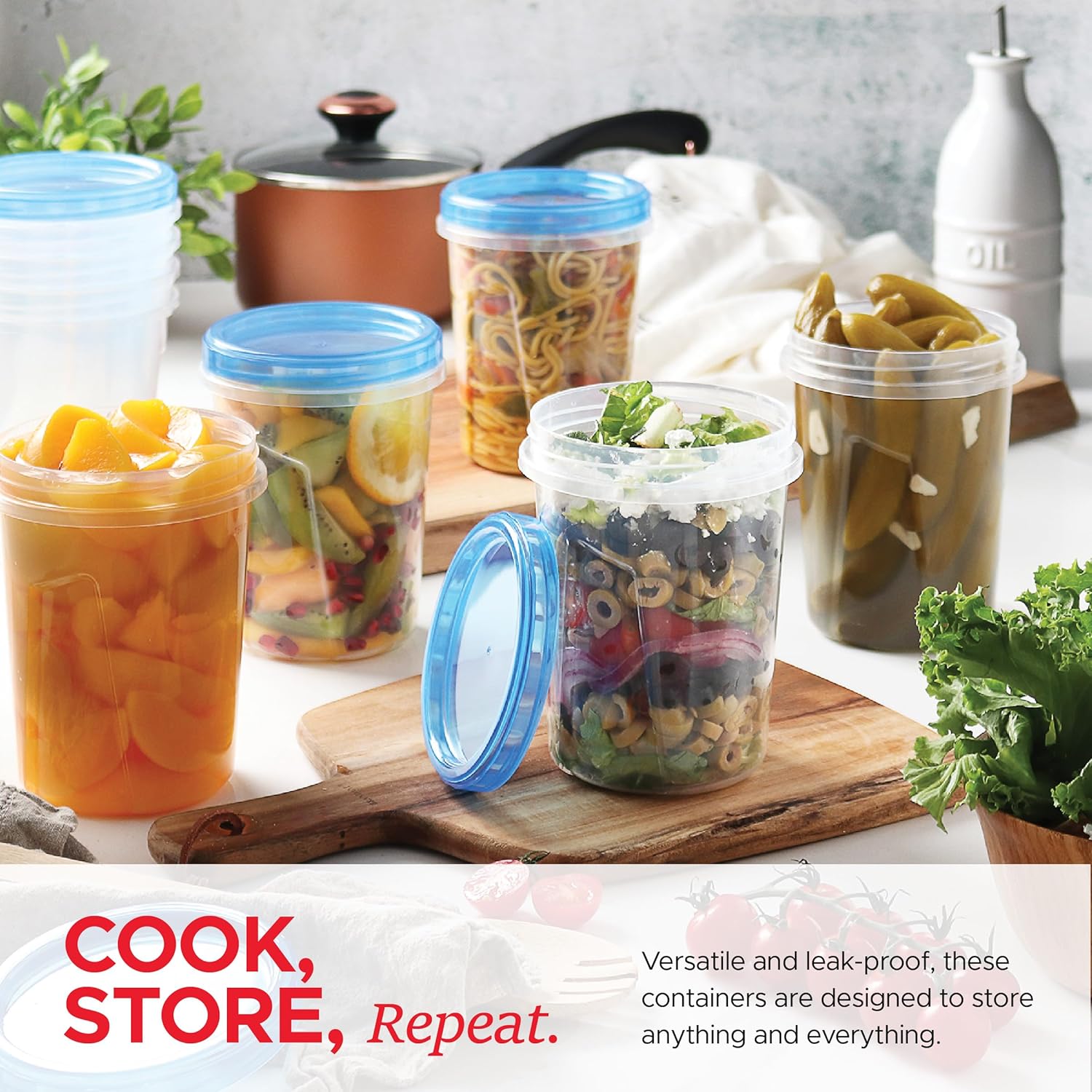 Tafura 10 Pack Leakproof Freezer Containers for Food with Twist Top Lids - 32 Oz BPA Free Reusable Plastic Soup Containers with Screw On Lids - Ideal for Meal Prep, Leftovers & Pantry Organization