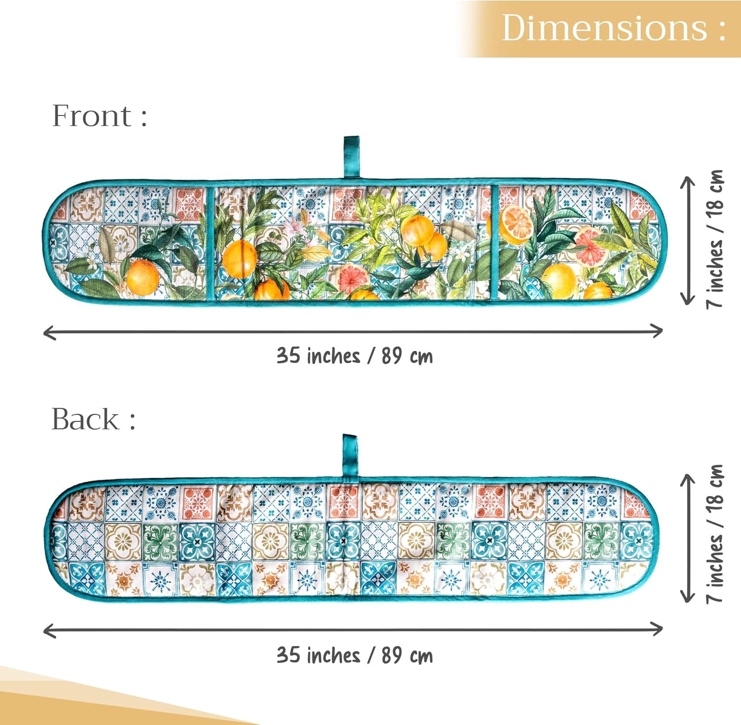Maison d' Hermine Double Oven Mitts 100% Cotton 7"x35" Double Oven Mitt Heat Resistant BBQ Cooking Gloves with Loop, Baking, Grilling, Home, Kitchen, Handling Hot Pans Spring Summer (Agrume)